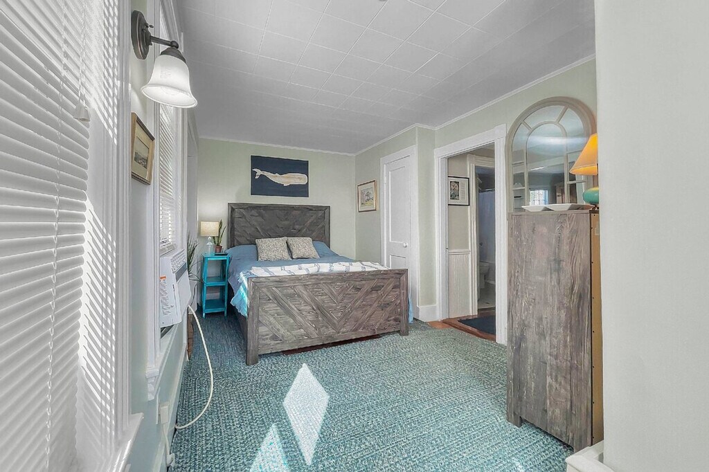 Experience the charm of Marblehead with this cozy apartment located in the heart of downtown. Situated on the first floor of an elevated historic building, this apartment offers one-floor living after ascending a few stairs. Feel at home with its proximity to vibrant dining, shopping, and cultural experiences, all within walking distance. Enjoy the convenience of a quick bus, Uber, or car ride to downtown Salem. The apartment features a comfortable living space with an eat-in kitchen equipped with full-sized appliances, a Keurig coffee maker, and a blender. Relax in the living room with a big screen smart TV and high-speed Wi-Fi. The bedroom offers a queen-sized bed, while the living room sofa opens into a queen-size sleeper, accommodating up to four guests. The apartment includes one off-street parking space located at the back of the building in front of the garage. For those traveling with children, a luxury Pack-n-Play or other children's furnishings are available for an additional charge, subject to availability. Marblehead, founded in 1629, is a treasure trove of history and culture. Explore the narrow streets of Old Town, visit the Marblehead Neck lighthouse, or enjoy the scenic views of Marblehead Harbor. The town is known for its sailing races and historical landmarks, offering a unique blend of antiquing, art, and history. Devereux Beach and Gas House Beach provide perfect spots for relaxation and recreation. Smoking is strictly prohibited, with fines and immediate eviction for violations. No parties or events are allowed, and any damage affecting future guests will result in liability. Exterior security cameras are present for your safety. Check-in and check-out times are flexible, but please follow the provided instructions for returning keys and remotes. The apartment is equipped with high-speed Wi-Fi, making it suitable for remote work. A desk with an office chair is available in the bedroom, providing a comfortable workspace. A laptop computer is not included. [SI]