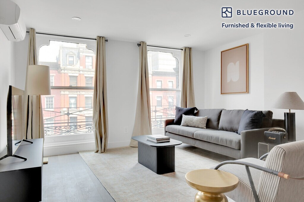Discover the best of New York, with this three bedroom apartment in Cobble Hill. It’ll be easy to simply show up and start living in this furnished apartment with its fully equipped kitchen, living room, and our dedicated, on-the-ground support. (ID #NYC755) The advertised rate of $6,280/month is the lowest available price, based on a 1 month(s) and 3 day(s) stay with a move-in date of January 5, 2026. If you’re looking for a 1-year stay, the rate is $6,810/month. Rates vary depending on the duration of stay, season, and other parameters. For exact pricing and additional pricing components, please visit our website and enter your desired move-in and move-out dates. The rate is applicable when billed upfront; it can be higher if billed in multiple payments. Brokers are welcome to reach out. Were you looking for an unfurnished lease? Try Blueground instead and upgrade from unfurnished to furnished living: - Furnished at rates comparable to unfurnished - No setup or furniture costs - save thousands - Move-in ready - save time, just bring your suitcase Designed with you in mind Thoughtfully designed with bespoke finishes, modern furnishings, and a fully equipped kitchen, you’ll enjoy that “I’m home” feeling with this Blueground apartment. Whether you’re lounging in your bright living room streaming the latest and greatest entertainment on the smart TV or premium wireless speaker, or getting some well-earned rest on the superior quality mattress with luxury linens, you’ll fall in love with everything this Cobble Hill apartment has to offer. This apartment also offers in-apartment laundry. Sleeping arrangements Queen Bed, 63in/160cm Queen Bed, 63in/160cm Double Bed, 55in/140cm Amenities Building amenities unique to this three bedroom apartment include an on-site: - Dryer - Washing machine - Pets allowed Arrival and ongoing support The entire apartment is yours to enjoy! Throughout your stay, you’ll have access to our Client Experience team through the Blueground App. You can schedule additional cleanings, submit maintenance requests, and view our neighborhood recommendations with just a few taps. We’ll share all details upon confirmation of your stay. Ideally Located This furnished apartment is located in Cobble Hill, an upscale residential neighborhood with a historic feel. Featuring picturesque rowhouses and brownstones as well as trendy dining and shopping options, this pedestrian-friendly area beautifully balances past and present. There are traditional butcher shops, like Paisanos, close to contemporary favorites, such as Trader Joe’s. The area is rich in leisurely activities, with a variety of first-run and independent films shown at Cobble Hill Cinemas, and both classics and best-sellers found at the local bookshop, Books Are Magic. Cobble Hill Park lies in the center of the neighborhood, a small green space for quiet relaxation. For convenient commuting, the neighborhood is connected to the rest of the city by several subway lines and bus routes. Other things to note This Blueground apartment has flexible lease options, allowing you to book it for one month, a year, or more. Pets are welcome, though weight limits and breed restrictions apply and may incur fees. Please keep in mind that this is a walk up building. Brokes CYOF. We take great pride in ensuring every photo displayed is shot in our own units with our actual furnishings. That said, we regularly refresh our decor and furniture arrangement, which may differ from what’s pictured.