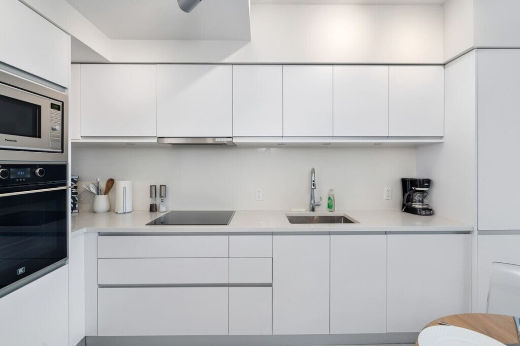 Modern 1-bedroom and den in the heart of Olympic Village! This bright and stylish unit features sleek furnishings, an open-concept layout, and a private balcony with city views. The fully equipped kitchen and spacious living area make it perfect for work or leisure. Located steps from trendy cafes, breweries, seawall paths, and transit, you’ll feel at home while enjoying the best of Vancouver’s vibrant lifestyle. In-suite laundry, premium building amenities, and a prime location complete this urban retreat. Step into a bright and open living area featuring floor-to-ceiling windows that bathe the space in natural light. The sleek, fully equipped kitchen boasts premium appliances, ample storage, and a stylish layout ideal for home cooking or entertaining. Adjacent to the living area, a private balcony provides a serene spot to enjoy morning coffee or evening views. The bedroom is thoughtfully furnished for restful nights, complemented by a spa-inspired bathroom with high-end finishes. A cozy den provides the perfect set-up for remote work or study. Additional conveniences include in-suite laundry and plenty of storage space. Guests will have full, private access to the unit, including the 1-bedroom, den, bathroom, living area, kitchen, and balcony. Additionally, they will enjoy access to the building's amenities, such as the fitness center and shared patio. Parking is also available with 1 designated underground parking spot. Situated in the vibrant Olympic Village, this unit is surrounded by some of Vancouver's best amenities and attractions. Enjoy the convenience of trendy cafes, award-winning restaurants, and local breweries just steps away. The scenic False Creek Seawall, perfect for walking, jogging, or cycling, is moments from your door. With easy access to public transit, including SkyTrain and bus routes, you’re only minutes from Downtown Vancouver, Yaletown, and major city landmarks. Ideal for urban living! Getting around is effortless from this prime Olympic Village location. The unit is just a 5-minute walk to the SkyTrain station, connecting you to Downtown Vancouver, YVR Airport, and other key areas in minutes. The False Creek Seawall is steps away, offering scenic walking and cycling routes. Local bus routes and ride-sharing options like Uber and Lyft are readily available. For daily needs, grocery stores, pharmacies, and restaurants are within easy walking distance. No car needed! Vancouver International Airport (YVR): 20-minute drive Downtown Vancouver: 10-minute drive or 15-minute SkyTrain ride Vancouver City Centre: 10-minute drive or 12-minute SkyTrain ride Nearest Grocery Store and Pharmacy: 5-minute walk Restaurants and Cafes: Steps away in Olympic Village, with a variety of options nearby Parks: 5-minute walk to False Creek Seawall and Hinge Park Transit: 5-minute walk to the nearest SkyTrain station Important House Rules: No parties, no smoking in unit or on the patio, and no additional guests without permission. Any broken rules will result in a minimum $1000 fine. Check-in and check-out instructions are straightforward, and our team is always available should you need assistance. We prioritize a seamless and enjoyable experience for our guests, ensuring your stay is comfortable and memorable. A cozy den provides the perfect set-up for remote work or study. [SI]