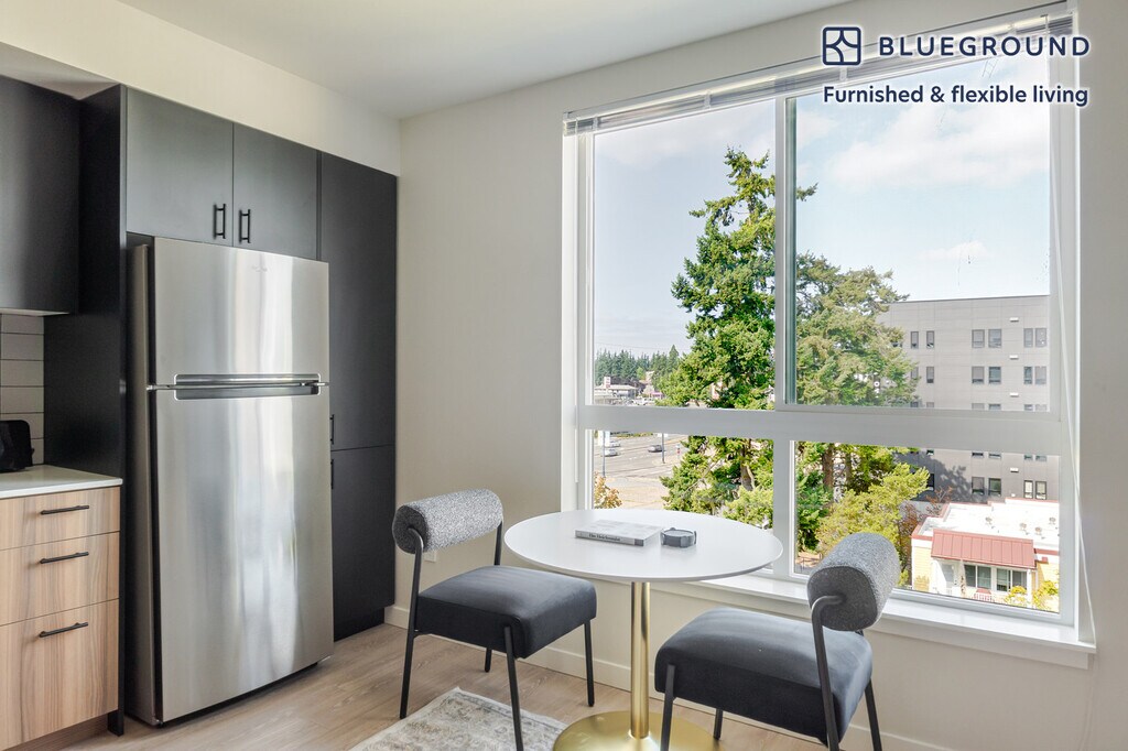 Discover the best of Shoreline, with this studio apartment in Meridian Park. It’ll be easy to simply show up and start living in this furnished apartment with its fully equipped kitchen, living room, and our dedicated, on-the-ground support. (ID #SEA932) The advertised rate of $1,290/month is the lowest available price, based on a 1 month(s) and 29 day(s) stay with a move-in date of October 20, 2025. If you’re looking for a 1-year stay, the rate is $1,580/month. Rates vary depending on the duration of stay, season, and other parameters. For exact pricing and additional pricing components, please visit our website and enter your desired move-in and move-out dates. The rate is applicable when billed upfront; it can be higher if billed in multiple payments. Brokers are welcome to reach out. Were you looking for an unfurnished lease? Try Blueground instead and upgrade from unfurnished to furnished living: - Furnished at rates comparable to unfurnished - No setup or furniture costs - save thousands - Move-in ready - save time, just bring your suitcase Designed with you in mind Thoughtfully designed with bespoke finishes, modern furnishings, and a fully equipped kitchen, you’ll enjoy that “I’m home” feeling with this Blueground apartment. Whether you’re lounging in your sophisticated living room streaming the latest and greatest entertainment on the smart TV or premium wireless speaker, or getting some well-earned rest on the superior quality mattress with luxury linens, you’ll fall in love with everything this Meridian Park apartment has to offer. This apartment also offers in-apartment laundry. Sleeping arrangements Queen Bed, 63in/160cm Amenities Building amenities unique to this studio apartment include an on-site: - Doorman - Dryer - Elevator - Washing machine - Parking - Pets allowed - Rooftop BBQ Arrival and ongoing support The entire apartment is yours to enjoy! Throughout your stay, you’ll have access to our Client Experience team through the Blueground App. You can schedule additional cleanings, submit maintenance requests, and view our neighborhood recommendations with just a few taps. We’ll share all details upon confirmation of your stay. Other things to note Building amenities may have an extra cost. This Blueground apartment has flexible lease options, allowing you to book it for one month, a year, or more. Pets are welcome, though weight limits and breed restrictions apply and may incur fees. Parking is offered based on availability and is subject to a fee. We take great pride in ensuring every photo displayed is shot in our own units with our actual furnishings. That said, we regularly refresh our decor and furniture arrangement, which may differ from what’s pictured.