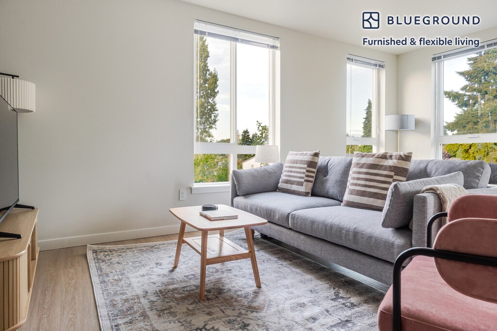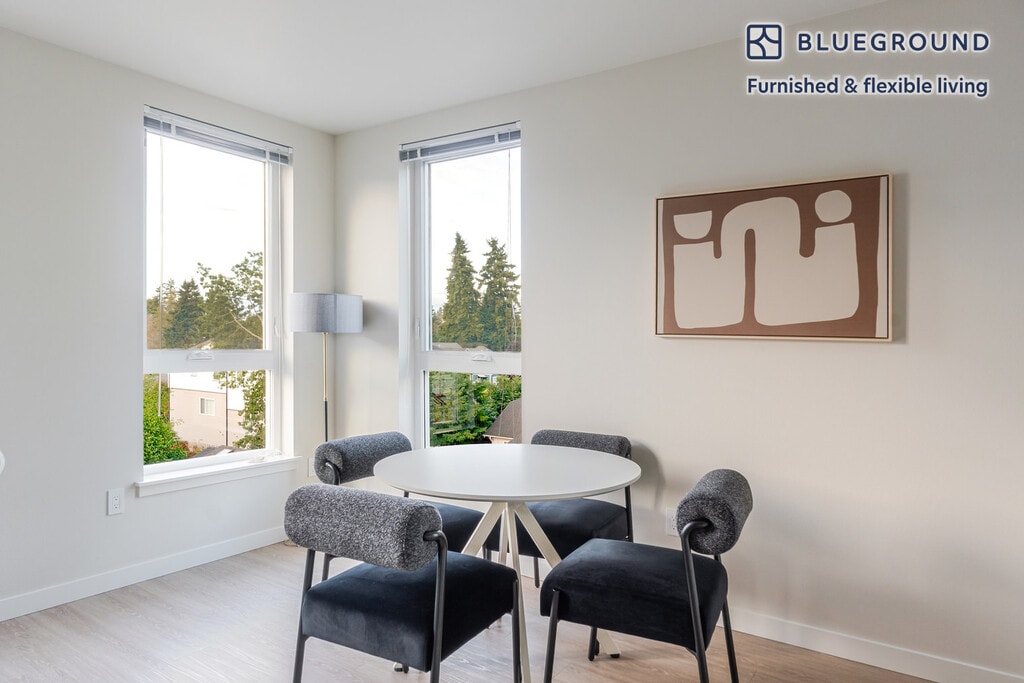 Show up and start living from day one in Shoreline with this sophisticated two bedroom Blueground apartment. You’ll love coming home to this thoughtfully furnished, beautifully designed, and fully equipped Meridian Park home. (ID #SEA931) The advertised rate of $1,550/month is the lowest available price, based on a 1 month(s) and 29 day(s) stay with a move-in date of October 20, 2025. If you’re looking for a 1-year stay, the rate is $2,780/month. Rates vary depending on the duration of stay, season, and other parameters. For exact pricing and additional pricing components, please visit our website and enter your desired move-in and move-out dates. The rate is applicable when billed upfront; it can be higher if billed in multiple payments. Brokers are welcome to reach out. Were you looking for an unfurnished lease? Try Blueground instead and upgrade from unfurnished to furnished living: - Furnished at rates comparable to unfurnished - No setup or furniture costs - save thousands - Move-in ready - save time, just bring your suitcase Designed with you in mind Gorgeous furniture, fully equipped kitchen, smart TV, and a premium wireless speaker are just a few of the amenities you’ll find inside this two bedroom apartment. Ideally located in Shoreline, you’ll find a lot to love outside as well. When you’re ready to relax, you’ll be happy to discover every Blueground bedroom comes with superior quality mattresses, luxury linens, and cozy towels. We handle everything so you can simply show up and start living. This apartment also offers in-apartment laundry. Sleeping arrangements Queen Bed, 63in/160cm Queen Bed, 63in/160cm Amenities Building amenities unique to this two bedroom apartment include an on-site: - Doorman - Dryer - Elevator - Washing machine - Parking - Pets allowed - Rooftop BBQ Arrival and ongoing support The entire apartment is yours to enjoy! Throughout your stay, you’ll have access to our Client Experience team through the Blueground App. You can schedule additional cleanings, submit maintenance requests, and view our neighborhood recommendations with just a few taps. We’ll share all details upon confirmation of your stay. Other things to note Building amenities may have an extra cost. This Blueground apartment has flexible lease options, allowing you to book it for one month, a year, or more. Pets are welcome, though weight limits and breed restrictions apply and may incur fees. Parking is offered based on availability and is subject to a fee. We take great pride in ensuring every photo displayed is shot in our own units with our actual furnishings. That said, we regularly refresh our decor and furniture arrangement, which may differ from what’s pictured.