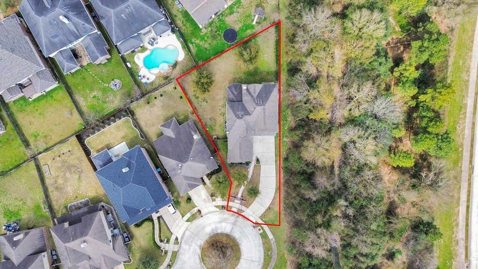 Tucked away on a premium cul-de-sac lot with no neighbors on three sides, this stunning home offers unmatched privacy and a scenic backdrop of lush greenspace and a peaceful ravine. The backyard retreat features a covered patio, mature trees, and tranquil wooded views ideal for relaxing or entertaining.Inside, a grand two-story foyer opens to an expansive, open-concept layout. Highlights include a private study, formal dining room, spacious game room, media room, and four bedrooms with 3.5 well-appointed baths. The gourmet kitchen boasts a large island with breakfast bar, granite countertops, under-cabinet lighting, and a bay-windowed breakfast area.The luxurious primary suite offers dual granite vanities, a soaking tub, separate shower, and a large walk-in closet.Located in the vibrant, master-planned community of Bridgeland, residents enjoy access to resort-style pools, scenic trails, parks, and top-rated schools.