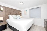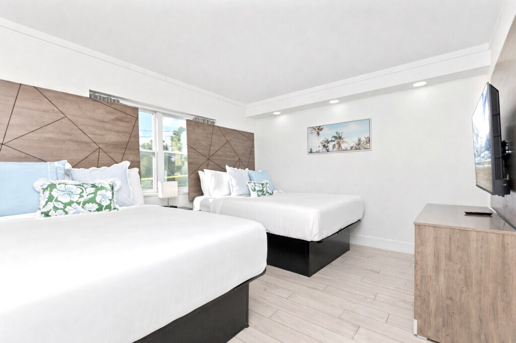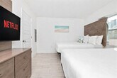 The advertised rate of $3,828/month is the lowest available price, based on a 1 month(s) and 2 day(s) stay with a move-in date of February 24, 2026. Rates vary depending on the duration of stay, season, and other parameters. For exact pricing and additional pricing components, please visit our website and enter your desired move-in and move-out dates. The rate is applicable when billed upfront; it can be higher if billed in multiple payments. Feel at home in this spacious 2-bedroom suite, ideal for larger families or groups. The suite includes a full kitchen equipped with a full-size refrigerator, stove, oven, microwave, and basic cookware. Added comfort and convenience are provided by a private bathroom, smart TVs, air conditioning, and high-speed Wi-Fi (100+ Mbps). This 2-bedroom suite features three queen beds across two private bedrooms, plus a sofa bed in the living area, comfortably accommodating up to 8 guests. Located just a three-minute walk to the beach, guests also enjoy access to Fin’s Inn shared amenities, including the seasonal outdoor pool and the on-site game room with arcade games and foosball. The layout offers plenty of room to relax after a day at the beach while keeping everyone together under one roof. [SI]