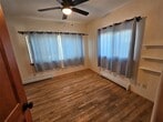 3 bed 1.5 Bath. Wood floors, washer/dryer, Fridge, Parking for two cars off-street. No Garage. Nice yard. Kiva Fire Place. Mini Split in the Living room, hot water baseboard heat throughout. The backyard features a covered back porch with a porch swing. Quite and private This is a duplex. The Casita has its own entrance. Only shares one small wall with the house.