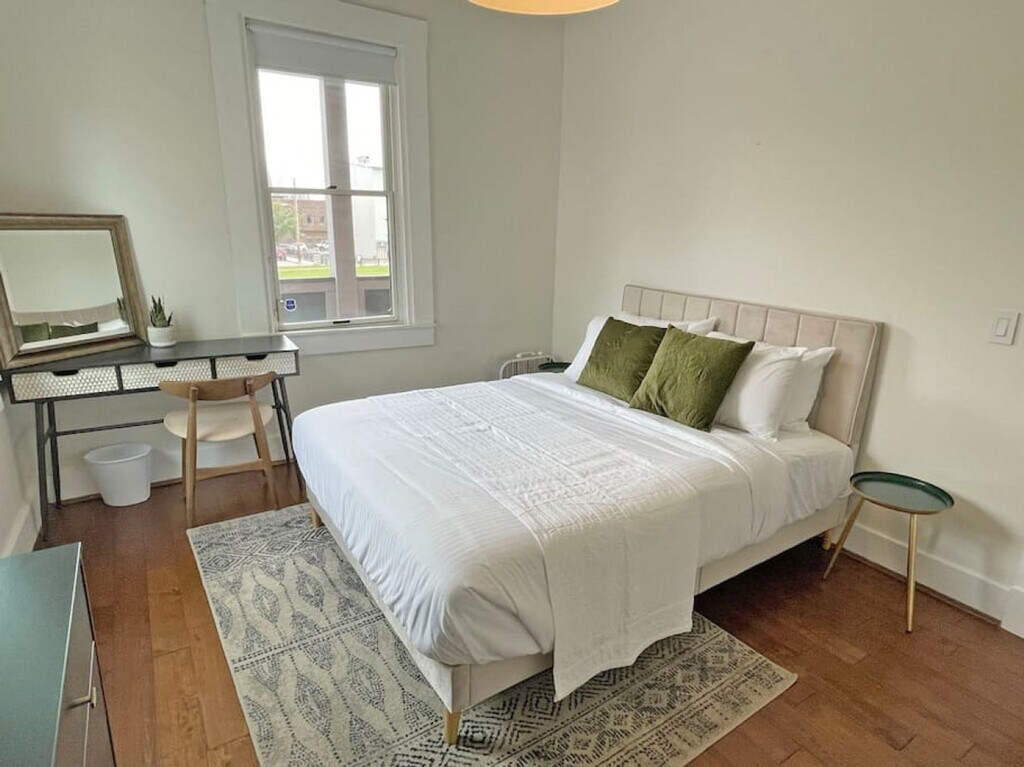 Feel at home in this spacious 2-bedroom gem near Findlay Market, Cincinnati. Just a 3-minute walk to the Findlay Market Streetcar stop, this apartment offers easy access to all of Over the Rhine, Downtown, UC, Rhinegeist, and the sports and music stadiums. Enjoy your morning coffee on the private veranda and explore the vibrant neighborhood. This well-appointed, bright apartment features a private entrance from a shared courtyard. The master bedroom, living room, kitchen, and bathroom are on the 2nd floor, while the second bedroom is on the third floor. Enjoy the convenience of an in-unit washer and dryer, a private veranda, and a generously stocked kitchen. Sleeping accommodations include two cozy queen beds and a sofa bed with hotel-quality sheets. While on-site parking is not available, we can guide you to the best parking options nearby. The apartment is a 3-minute walk to the nearest Streetcar stop, offering free and convenient transportation around downtown. Located in Over the Rhine, known as Cincinnati's downtown, food, and nightlife destination, this apartment is surrounded by bars, restaurants, boutiques, and more. The neighborhood is a mixed-income, urban area with well-appointed condos and low-income housing. Just a few blocks away is Findlay Market, Ohio's longest-running farmers market. Quiet hours are from 9:30pm-8am, and the courtyard and outdoor veranda should not be used after 9:30pm. Parties and amplified music are strictly forbidden without advance written consent. Unauthorized parties may lead to prosecution under Ohio Revised Code. Smoking and open flames are not allowed. Violating house rules may result in reservation termination without refund. Additional fees may apply for cleaning, pet hair, stains, smoking indoors, unreturned keys, and deep cleaning for stays longer than 14 days. [SI]