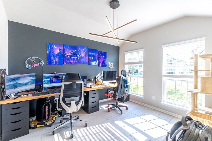 Charming single-story home in Barton Creek Ranch with top-notch CISD schools nearby. All-tile floors except bedrooms, stainless steel appliances, gas cooktop, and modern lighting create a bright, under cabinet lighting, primary bathroom has double shower heads in shower, open atmosphere. Flex space at the front offers versatility as an office, extra bedroom, or gym. Gas line in patio ready for your outdoor kitchen or BBQ . Additional features include full gutters, 42-inch kitchen cabinets, granite countertops, and a covered patio. Faux wood blinds, 3-sided brick exterior, and convenient location near I-45, Woodlands Mall, Market Street, and Cynthia Woods Mitchell Pavilion. Don't miss out on this lovely property!