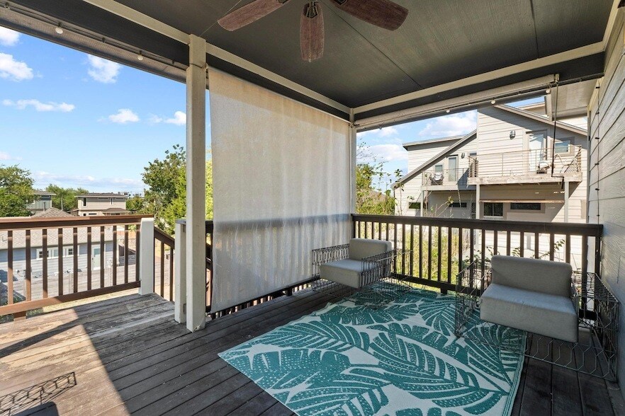 Location is everything here, and you re not just getting the address everyone wants, you re getting a home that lives up to it. This stunning East Austin spot puts you minutes from everything cool: UT, Disch Falk Field, Manor Rd favorites, Mueller, Alamo Drafthouse, and the East 6th District. Whether you walk, bike, or scooter, you re surrounded by Austin s best coffee, food, and energy. Out front, the fenced yard and putting green make it feel like your own little pocket of Austin, complete with a big porch shaded by mature trees. Inside, the main floor has great flow; bright, open, and designed for everyday living. The large living room sits at the center of it all, filled with natural light and anchored by a beautiful statement light fixture that instantly draws your eye. Wood floors, high ceilings, and thoughtful lighting bring warmth to every corner. The kitchen wraps around with a breakfast bar, granite counters, tile backsplash, and stainless appliances, giving you plenty of room to cook and hang out. All three bedrooms sit upstairs, including a spacious primary suite that opens directly to the balcony. The ensuite bath has a dual vanity, walk-in shower, and a large closet. All NEW carpet upstairs! Out back, the lower patio connects to the upper balcony, overlooking a large, fully fenced yard made for lazy Sundays or low-key get-togethers. Come live where Austin really happens; where energy, convenience, and character all meet in one unforgettable home.