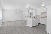Welcome to this charming 2-bedroom, 1-bath upstairs condo! Enjoy fresh new paint, modern laminate and tile flooring, ceiling fans, and brand-new blinds throughout. The home is filled with natural light, creating a bright and inviting atmosphere. The functional kitchen features a breakfast bar, classic white appliances, and plenty of cabinet space. Conveniently located near freeway access, shopping centers, and local dining perfect for anyone seeking comfort and convenience in a great location. Section 8 approved!
