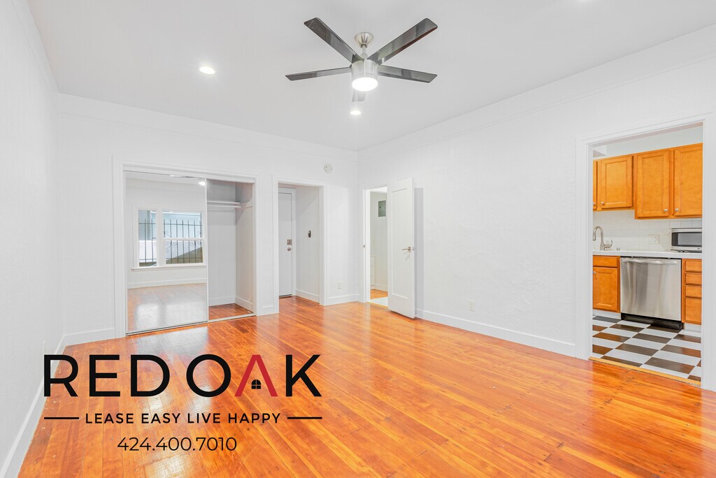 Excellent Studio with Hardwood Floors, Ample Closet, and On-Site Laundry ~ In Hollywood! Key Features: ~ Open & Airy: Hardwood-style floors, enhanced by recessed lighting and bright windows. ~ Storage: Ample closet with mirrored sliding door. ~ Stay Cool: Wall-mounted A/C and ceiling fan for summer heat. ~ Kitchen: Hardwood cabinets, tile countertops & essential kitchen appliances. ~ Refreshing Bath: Well-lit mirror, pedestal sink, and soaking tub. ~ Utilities: Water, sewage, and trash are bundled in your rent price. ~ On-Site Laundry: Convenient facilities for easy washing. ~ Pets Welcome: Minimal pet rent. ~ Location: Located in the heart of Hollywood, just moments from the Walk of Fame, Hollywood Boulevard, and major studios. Enjoy easy access to dining, shopping, nightlife, and public transit for vibrant and convenient Los Angeles living. ~ Don't miss out on the opportunity! Available for an immediate move-in. Call to schedule a viewing today! LEASE TERMS: One Year Lease Photos may not reflect the exact available unit. Per CA Law AB628, cooking apparatus/refrigerator will be provided prior to taking occupancy. Availability is not guaranteed - please verify all details. Square Footage is approximate. Street Parking only. Showings may not be 1-on-1. Listed pricing and special offers are only valid for new residents. Pricing and availability are subject to change without notice and may vary between similar units. Red Oak does not warrant or represent that image renderings on this website are an accurate representation of every floor plan available at the Property. Floor plans may vary unit by unit and by location at the Property. Please contact the Leasing Office to schedule a tour of the Property and the particular unit you are interested in. Pricing and availability are subject to change at any time. **All applicants receive equal consideration; we follow all Fair Housing laws.*