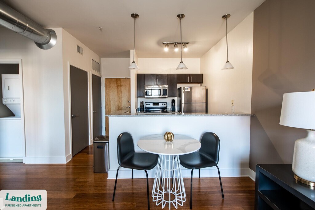 Landing offers flexible lease terms from weeks to months. Please always visit our website or contact us for the latest pricing & availability. Stay longer, save more: 6-Month Minimum base rent: starts at $2674/mo 12-Month Minimum base rent: starts at $2406/mo Landing offers flexible leases across a network of over 35,000 fully-furnished apartments throughout 375+ cities so you can rent on your terms, practically anywhere, and avoid the hassle of paying deposits or application fees. Visit to learn about all the benefits of a Landing membership, see our competitive up-to-date pricing, explore available apartments, take virtual tours, and make reservations online without jumping through traditional rental hoops. Landing's apartments at Cedar Broad are designed for comfortable, easy living, with the ability to stay as long as you like. Experience living with Landing Every apartment is outfitted with all the modern essentials including: custom-designed furnishings, a fully-equipped kitchen with deluxe stainless steel appliances, a gourmet coffee maker, premium linens, Smart TVs, and incredibly fast, reliable internet for working from home. When you live with Landing, you'll enjoy a hassle-free experience with the added benefit of 24/7 access to our dedicated member experience team. Some of the nitty-gritty: a background check and proof of income are required; we're completely smoke-free; bundled utility packages and pricing vary based on length of stay; pet-friendly options available; listed price reflects a 12-month minimum stay.