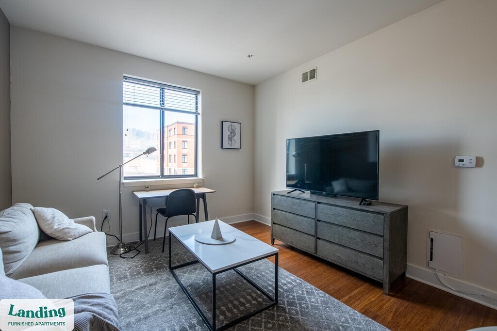 Landing offers flexible lease terms from weeks to months. Please always visit our website or contact us for the latest pricing & availability. Stay longer, save more: 6-Month Minimum base rent: starts at $2676/mo 12-Month Minimum base rent: starts at $2408/mo Landing offers flexible leases across a network of over 35,000 fully-furnished apartments throughout 375+ cities so you can rent on your terms, practically anywhere, and avoid the hassle of paying deposits or application fees. Visit to learn about all the benefits of a Landing membership, see our competitive up-to-date pricing, explore available apartments, take virtual tours, and make reservations online without jumping through traditional rental hoops. Landing's apartments at Cedar Broad are designed for comfortable, easy living, with the ability to stay as long as you like. Experience living with Landing Every apartment is outfitted with all the modern essentials including: custom-designed furnishings, a fully-equipped kitchen with deluxe stainless steel appliances, a gourmet coffee maker, premium linens, Smart TVs, and incredibly fast, reliable internet for working from home. When you live with Landing, you'll enjoy a hassle-free experience with the added benefit of 24/7 access to our dedicated member experience team. Some of the nitty-gritty: a background check and proof of income are required; we're completely smoke-free; bundled utility packages and pricing vary based on length of stay; pet-friendly options available; listed price reflects a 12-month minimum stay.
