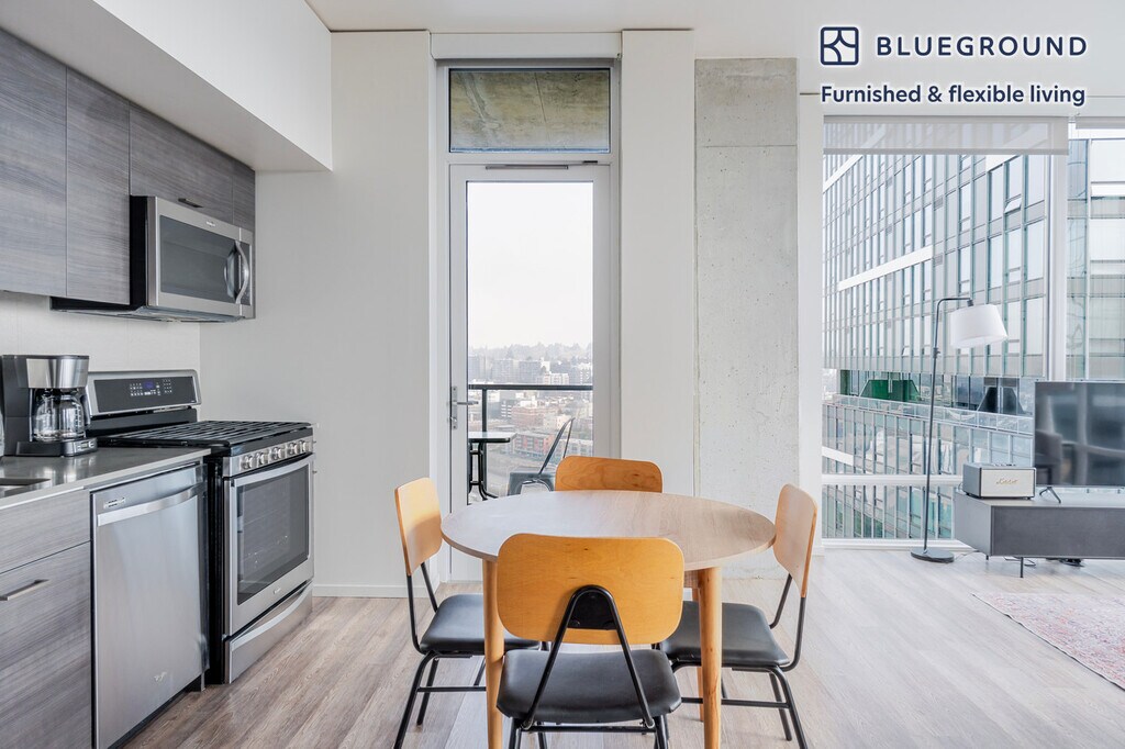 Show up and start living from day one in Seattle with this beautiful two bedroom Blueground apartment. You’ll love coming home to this thoughtfully furnished, beautifully designed, and fully equipped Denny Triangle home. (ID #SEA1011) The advertised rate of $2,230/month is the lowest available price, based on a 1 month(s) and 2 day(s) stay with a move-in date of February 28, 2026. If you’re looking for a 1-year stay, the rate is $4,470/month. Rates vary depending on the duration of stay, season, and other parameters. For exact pricing and additional pricing components, please visit our website and enter your desired move-in and move-out dates. The rate is applicable when billed upfront; it can be higher if billed in multiple payments. Brokers are welcome to reach out. Were you looking for an unfurnished lease? Try Blueground instead and upgrade from unfurnished to furnished living: - Furnished at rates comparable to unfurnished - No setup or furniture costs - save thousands - Move-in ready - save time, just bring your suitcase Designed with you in mind As with any Blueground apartment, you’ll find a thoughtfully designed space complete with beautiful furniture and a fully equipped kitchen in this two bedroom property. And, thanks to our superior quality mattresses, fully stocked linens, and towels, you can relax knowing you’ll always feel comfortably at home. When you’re ready for some fun, you can take in the Seattle vibes or bring the entertainment to you with the premium wireless speaker or smart TV. This apartment also offers in-apartment laundry. Sleeping arrangements King Bed, 70.8in/180cm Queen Bed, 63in/160cm Amenities Building amenities unique to this two bedroom apartment include an on-site: - Doorman - Dryer - Elevator - Swimming pool - Washing machine - Media room - Parking - Pets allowed - Rooftop BBQ Arrival and ongoing support The entire apartment is yours to enjoy! Throughout your stay, you’ll have access to our Client Experience team through the Blueground App. You can schedule additional cleanings, submit maintenance requests, and view our neighborhood recommendations with just a few taps. We’ll share all details upon confirmation of your stay. Ideally Located This furnished apartment is located in Denny Triangle, referring to the triangle-shaped area formed by Denny Way, Olive Way, and 5th Avenue. As the home of the Amazon Seattle headquarters, this area is a thoroughly developed business hub, full of high rise offices and condos. There’s no shortage of dining options here, offering practically every cuisine for lunch or dinner. This neighborhood is ideal for walking, and the central location makes it easy to go on foot to Downtown, South Lake Union or Capitol Hill. To get around, the King Country Metro Route 8 will be your guide. Other things to note Building amenities may have an extra cost. This Blueground apartment has flexible lease options, allowing you to book it for one month, a year, or more. Pets are welcome, though weight limits and breed restrictions apply and may incur fees. Parking is offered based on availability and is subject to a fee. We take great pride in ensuring every photo displayed is shot in our own units with our actual furnishings. That said, we regularly refresh our decor and furniture arrangement, which may differ from what’s pictured. [SI]