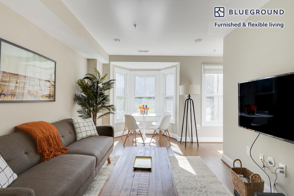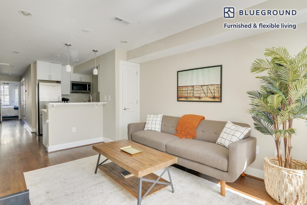 Show up and start living from day one in Washington, D.C. with this beautiful one bedroom Blueground townhouse. You’ll love coming home to this thoughtfully furnished, beautifully designed, and fully equipped Dupont Circle home. (ID #WDC743) The advertised rate of $3,060/month is the lowest available price, based on a 1 month(s) and 3 day(s) stay with a move-in date of January 15, 2026. If you’re looking for a 1-year stay, the rate is $3,480/month. Rates vary depending on the duration of stay, season, and other parameters. For exact pricing and additional pricing components, please visit our website and enter your desired move-in and move-out dates. The rate is applicable when billed upfront; it can be higher if billed in multiple payments. Brokers are welcome to reach out. Were you looking for an unfurnished lease? Try Blueground instead and upgrade from unfurnished to furnished living: - Furnished at rates comparable to unfurnished - No setup or furniture costs - save thousands - Move-in ready - save time, just bring your suitcase Designed with you in mind Thoughtfully designed with bespoke finishes, modern furnishings, and a fully equipped kitchen, you’ll enjoy that “I’m home” feeling with this Blueground townhouse. Whether you’re lounging in your stylish living room streaming the latest and greatest entertainment on the smart TV or premium wireless speaker, or getting some well-earned rest on the superior quality mattress with luxury linens, you’ll fall in love with everything this Dupont Circle townhouse has to offer. This townhouse also offers in-townhouse laundry. Sleeping arrangements Queen Bed, 63in/160cm Amenities Building amenities unique to this one bedroom townhouse include an on-site: - Dryer - Washing machine Arrival and ongoing support The entire townhouse is yours to enjoy! Throughout your stay, you’ll have access to our Client Experience team through the Blueground App. You can schedule additional cleanings, submit maintenance requests, and view our neighborhood recommendations with just a few taps. We’ll share all details upon confirmation of your stay. Ideally Located This apartment for rent in Dupont Circle invites you to explore DC's most beautiful neighborhood. Old-World townhouses blend harmoniously with condos and modern apartments, only 13 minutes away from Union Station by car and train. Passing through the inner ring of Dupont Circle is Massachusetts Avenue, known for its grand mansions and embassies. Widely popular for its bohemian and alternative scene, Dupont Circle maintains all the conveniences of urban living and a mix of popular galleries and fine dining. A bicycle will come in hand when exploring this bike- and pedestrian-friendly neighborhood with numerous green spaces for a quiet afternoon. Other things to note This Blueground townhouse has flexible lease options, allowing you to book it for one month, a year, or more. Please keep in mind that this is a walk up building. We take great pride in ensuring every photo displayed is shot in our own units with our actual furnishings. That said, we regularly refresh our decor and furniture arrangement, which may differ from what’s pictured. Also note - A permit is required for street parking near the building - There are stairs leading up to the entrance of this apartment, but no elevator [SI]