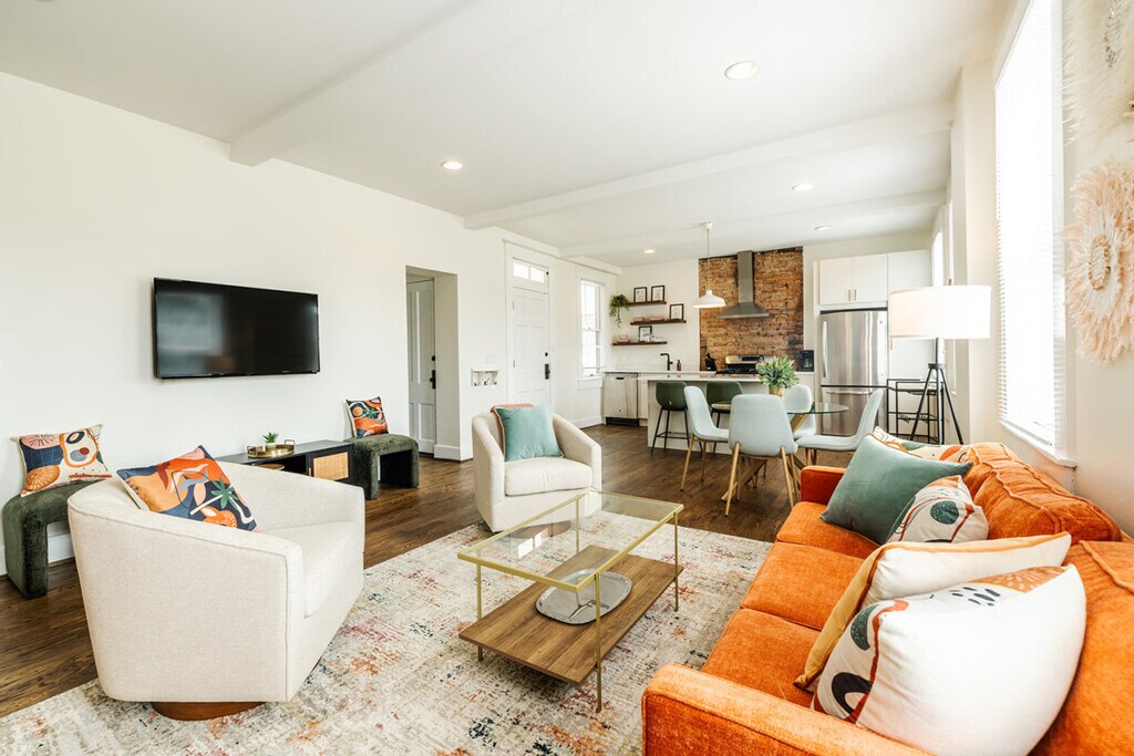 Feel at home in this spacious 2-bedroom gem near Findlay Market, located on the first floor with a private entrance from a shared courtyard. Just a 3-minute walk to the Findlay Market Streetcar stop, this apartment offers easy access to all of Over the Rhine, Downtown, UC, Rhinegeist, and the sports and music stadiums. You'll feel at home in this well-appointed, bright apartment featuring a private veranda, in-unit washer and dryer, and a generously stocked kitchen. The huge open kitchen and living-room space is perfect for spending time with your group before going out. The sleeping accommodations include one king-size bed, a queen bed, and a sofa bed with hotel-quality sheets. Free parking is available as a monthly pass for a brand new parking garage a 5-minute (0.3-mile) walk away, but it is only available for stays of 21+ days. The perfect day here starts with a coffee in the courtyard, a treat from Blue Oven Bakery, and a visit to Washington Park. You won't believe how close you are to so many area attractions, including a 3-minute walk to Findlay Market, various bars and restaurants, and a 5-minute walk to Rhinegeist Brewery. The free streetcar stop, just a 3-minute walk away, will take you to most of downtown, making it easy to explore all that Cincinnati has to offer. Quiet hours are from 9:30pm-8am. Parties and amplified music are strictly forbidden without advance written consent. Unauthorized parties may result in prosecution for criminal trespass. Smoking and lighting anything in the property is not allowed, with a $300 cleaning fee for violations. A $170 re-keying fee applies for unreturned keys. Additional fees may apply for excessive cleaning, pet hair, and stains. Our team is available via messaging or phone call from 9am-10pm EST for emergencies only after hours. Same-day reservations require prior contact to avoid entry denial. Dishonest or abusive behavior may result in reservation termination without refund. We reserve the right to terminate any reservation for any reason without refund if we believe there is intent to harm people or property, disturb neighbors, or harm the reputation of our property. Over the Rhine is known as Cincinnati's downtown, food, and nightlife destination, featuring dozens of bars, restaurants, boutiques, and pubs. It is a mixed-income, urban neighborhood with $800,000 condos alongside low-income housing. Be prepared to see and experience people from all walks of life. [SI]