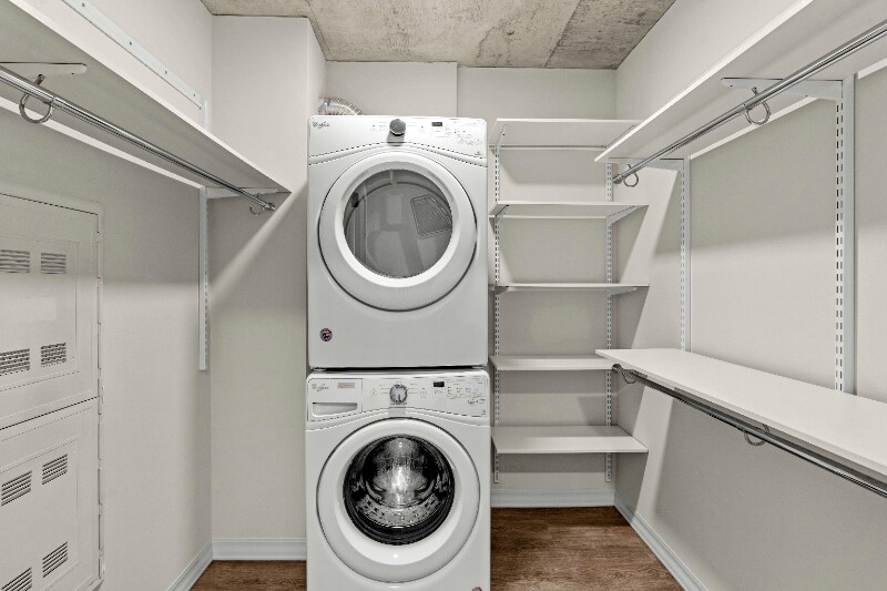 Property Id: 2180529 -smart home features -high exposed concrete ceilings -stainless steel appliances -floor-to-ceiling windows -smart home technology package featuring Lutron lights and shades, and a Honeywell thermostat -full fitness studio with a flexible yoga/barre space -Peloton bikes -rooftop lap pool -grilling stations -fire pits -community lounge w/ game tables -dog run -pet wash -Cats and dogs are welcome -garage parking is available with additional fees