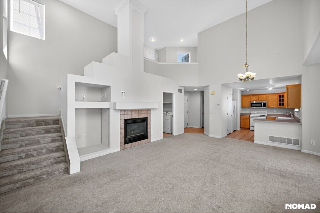 Welcome to this beautiful 3-bedroom, 2.5-bathroom home featuring soaring vaulted ceilings and an abundance of natural light. The spacious open floor plan is perfect for both relaxing and entertaining. The living room boasts large windows and high ceilings that create an airy, inviting atmosphere. The kitchen offers modern appliances, ample cabinet space, and a breakfast area that opens to the main living space. Upstairs, the primary suite includes a private bath and generous closet space. Two additional bedrooms and a full bath provide plenty of room for family, guests, or a home office. Additional highlights: Bright interiors with large windows throughout 2.5 bathrooms for convenience Private backyard/patio for outdoor enjoyment Attached garage and laundry hookups Located in the desirable The Farm neighborhood close within the cherry creek school district that's close to the following schools: Cherry Creek School district: Fox Hollow Elementary Liberty Middle School Grandview High School This neighborhood is surrounded by bike paths, trails and parks Don't miss the chance to make this bright and welcoming home yours! Preferred lease duration is 1 year or more. This property is unfurnished. Owner is responsible for trash. Security Deposit amount determined by the owner.