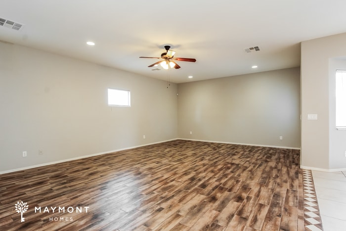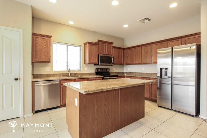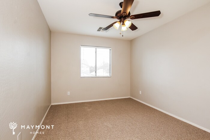 MOVE-IN READY This home is move-in ready. Schedule your tour now or start your application today. Monthly Recurring Fees: $25.00 - Smart Home $10.95 - Utility Management 18356 W Mission Lane in Waddell, Arizona features 5 bedrooms, 2.5 bathrooms, and 2,969 square feet of generously planned living space, positioned in a growing West Valley location with convenient access to Loop 303. From here, Surprise, Luke Air Force Base, and everyday shopping and dining are just minutes away, with downtown Phoenix reachable in approximately 35 to 40 minutes. The first floor offers a wide, open layout anchored by tile flooring throughout the main living areas. A welcoming living room sits near the entry, while a separate enclosed study provides a quiet space for work or focused use. The kitchen is centrally located and equipped with stainless steel appliances, ample wood cabinetry, granite countertops, and a center island that adds prep space and functionality. The dining area connects seamlessly to a secondary living space, creating a natural flow for daily routines. A half bathroom, additional storage, and direct access to the attached two-car garage complete the main level. Upstairs, the layout opens into a large loft-style area that adds flexibility without interrupting bedroom spacing. The primary bedroom offers substantial square footage and is paired with an en suite bathroom featuring dual sinks, a soaking tub, a separate shower, and generous cabinetry. Four additional bedrooms are arranged nearby and share a full hallway bathroom. Carpeted flooring throughout the upper level adds comfort, while the upstairs laundry room keeps everyday tasks conveniently located. Out back, the yard provides usable outdoor space suitable for relaxing or spending time outside. The home also includes smart features such as a smart lock and smart thermostat, adding convenience and efficiency to daily living. With its expansive layout, multiple living areas, and proximity to major roadways and West Valley destinations, this Waddell home offers a well-connected and flexible living option. Apply now! *Maymont Homes provides residents with convenient solutions, including simplified utility billing and flexible rent payment options. Contact us for more details. This information is deemed reliable, but not guaranteed. All measurements are approximate. Actual product and home specifications may vary in dimension or detail. Images are for representational purposes only. Some programs and services may not be available in all market areas. Prices and availability are subject to change without notice. Advertised rent prices do not include the required application fee, the partially refundable reservation fee (due upon application approval), or the mandatory monthly utility management fee (in select market areas.) Residents must maintain renters insurance as specified in their lease. If third-party renters insurance is not provided, residents will be automatically enrolled in our Master Insurance Policy for a fee. Select homes may be located in communities that require a monthly fee for community-specific amenities or services. For complete details, please contact a company leasing representative. Equal Housing Opportunity. This property is subject to homeowners' association (HOA) governance; restrictions and covenants may apply. Estimated availability date is subject to change based on construction timelines and move-out confirmation. This property allows self guided viewing without an appointment. Contact for details.