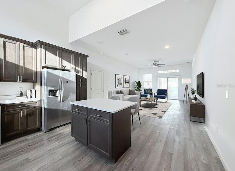 One or more photo(s) has been virtually staged. Brand new to the market! This beautiful 3-bedroom, 2-bath home features an open concept layout with a spacious great room and a modern kitchen equipped with stainless steel appliances and laminate flooring throughout main living areas. Enjoy a fenced backyard, large utility room, and an attached 2-car garage for added convenience. Located in the Poinciana area of Kissimmee, this home offers easy access to shopping, dining, parks, and major roadways, making daily commutes and errands simple and convenient. Move-in ready and waiting for you schedule your private showing today!