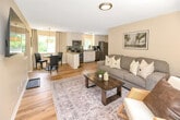 Relax and enjoy your stay in this spacious and newly renovated 1-bedroom apartment located on the 2nd floor in the safe and quiet community of Roseville. This apartment offers a peaceful ambiance surrounded by mature trees and privacy, making it an ideal retreat for those traveling to the Detroit area. Welcome to the newly renovated, spacious apartment where you can experience the peaceful ambiance of an inviting Roseville retreat. The open concept living area allows you to relax, watch a movie, prepare your favorite meals, and enjoy memorable evenings. The fully equipped kitchen features granite countertops and modern appliances, perfect for effortless meal preparation. The living room includes a comfortable sofa, a 55" Smart TV with Roku, and cozy accent chairs. The king bedroom provides a fantastic oasis of relaxation with a king-size bed and premium linens. Free parking is available in the parking area behind the house. An EV charger is also available for your convenience. Centrally located within Macomb County, Roseville offers convenient access to Metro Detroit. The apartment is minutes away from Macomb Mall and Macomb Community College, and just half a mile from the 696 and i94 expressways, providing quick routes North, South, and West. The location off Gratiot Ave offers quick access to shopping, restaurants, and entertainment, and is a short drive to Lake St. Clair and Metro Parkway Beach. This unit is not pet friendly, and non-approved pets will be subject to a $1000 fine. Smoking is only allowed outside, with a $1000 fine for smoking inside the unit. Quiet hours are from 9 PM to 8 AM daily, and noise complaints will incur a $250 fine. Security cameras are installed around the exterior of the property and in the common area laundry room, but not inside the apartment. Check-out time is 11 AM, with a $250 fee for late check-out after 11:15 AM. Moving furniture will result in a $250 fine, and an excessive cleaning fee of up to $250 may apply for dirt, mud, or stains on floors or rugs. The apartment is equipped with fast Wi-Fi, making it ideal for remote work. A laptop computer is not included. [SI]