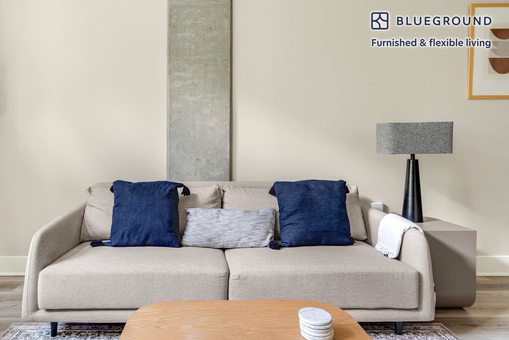 Show up and start living from day one in San Francisco with this beautiful one bedroom Blueground apartment. You’ll love coming home to this thoughtfully furnished, beautifully designed, and fully equipped Mission Bay home. (ID #SFO1966) The advertised rate of $4,430/month is the lowest available price, based on a 1 month(s) and 10 day(s) stay with a move-in date of January 9, 2026. If you’re looking for a 1-year stay, the rate is $4,760/month. Rates vary depending on the duration of stay, season, and other parameters. For exact pricing and additional pricing components, please visit our website and enter your desired move-in and move-out dates. The rate is applicable when billed upfront; it can be higher if billed in multiple payments. Brokers are welcome to reach out. Were you looking for an unfurnished lease? Try Blueground instead and upgrade from unfurnished to furnished living: - Furnished at rates comparable to unfurnished - No setup or furniture costs - save thousands - Move-in ready - save time, just bring your suitcase Designed with you in mind Thoughtfully designed with bespoke finishes, modern furnishings, and a fully equipped kitchen, you’ll enjoy that “I’m home” feeling with this Blueground apartment. Whether you’re lounging in your sophisticated living room streaming the latest and greatest entertainment on the smart TV or premium wireless speaker, or getting some well-earned rest on the superior quality mattress with luxury linens, you’ll fall in love with everything this Mission Bay apartment has to offer. This apartment also offers in-apartment laundry. Sleeping arrangements Queen Bed, 63in/160cm Amenities Building amenities unique to this one bedroom apartment include an on-site: - BBQ Area - Dryer - Elevator - Swimming pool - Washing machine - Lounge Arrival and ongoing support The entire apartment is yours to enjoy! Throughout your stay, you’ll have access to our Client Experience team through the Blueground App. You can schedule additional cleanings, submit maintenance requests, and view our neighborhood recommendations with just a few taps. We’ll share all details upon confirmation of your stay. Ideally Located This furnished apartment is located in Mission Bay, bordered by Dogpatch and China Basin. Originally an industrial district, it has undergone serious redevelopment. This up and coming neighborhood has gained popularity ever since the University of California San Francisco made it the site of its research campus. Mission Bay is populated by students and tech professionals from all around the world. The famed AT&T Park (home of the SF Giant’s baseball team) is only short walk away. Other things to note Building amenities may have an extra cost. This Blueground apartment has flexible lease options, allowing you to book it for one month, a year, or more. We take great pride in ensuring every photo displayed is shot in our own units with our actual furnishings. That said, we regularly refresh our decor and furniture arrangement, which may differ from what’s pictured. [SI]