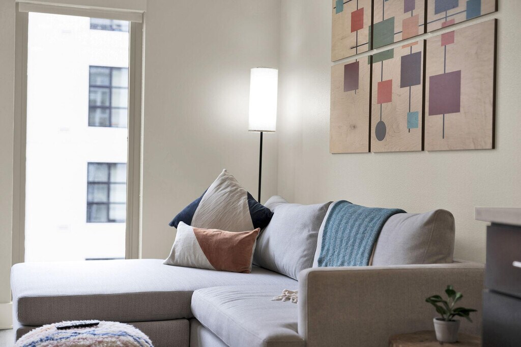 Experience the ultimate in comfort, style, and convenience in the heart of Mission Bay with this tastefully furnished 1-bedroom apartment. Located just south of China Basin and Oracle Park, this trendy and rapidly expanding residential area is a stone's throw from SoMa, Union Square, and the financial district. The apartment features modern amenities and interiors designed for both living and working from home. This fully furnished apartment is custom designed for the remote worker seeking a comfortable and inspiring environment. It includes a fully equipped kitchen, a full bathroom, a king-size mattress, plenty of storage, a smart TV, and all utilities. The apartment also boasts a full home office set-up with private high-speed internet, ensuring productivity and convenience. Secure garage parking is available upon request and subject to fees based on availability. Storage is available for $130 per month. Situated in San Francisco's most up-and-coming neighborhood, Mission Bay offers proximity to SoMa, Union Square, and the financial district. The area is vibrant and trendy, providing easy access to various attractions and amenities. Internet speeds are not guaranteed and may fluctuate based on your computer model and the router location. Early check-in from 10am-3pm will incur a fee of $75, and early check-in before 10am will incur a fee of one full night's rent. Late check-out from 11am-3pm will incur a fee of $75, and late check-out after 3pm will incur a fee of one full night's rent. Late check-outs must be requested at least 48 hours in advance. Includes private high-speed internet, a standing desk, an ergonomic work chair, a 34-inch ultra-wide monitor, a microphone, a webcam, computer speakers, an LED streaming light, a green screen, a keyboard, a mouse, a laptop stand, and a TOTU 16-in-1 Triple Display USB-C 3.1 Docking Station. A laptop computer is not included. [SI]