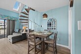 Feel at home in this sun-soaked 2-bedroom haven tucked in family-friendly Golf Colony Resort. Large, cozy living areas and private sleeping accommodations will welcome you home after a day of excitement. The primary bedroom with queen bed is on the main floor with a remodeled private bath steps from the bedroom door. The second bedroom is a loft-style suite with en suite bath and up a spiral staircase. This bedroom has an additional full-sized and twin bed. All bedrooms contain Roku connected smart TVs for all your streaming favorites. The kitchen is fully stocked with everything needed to prepare a gourmet meal at home, and there is a dining table for 4 with additional bar stool seating. The comfy living room has 2 couches, a 65" smart TV with premium cable and streaming options, and there is great Wi-Fi at 100+ MBPS speeds. A private patio offers your own personal spot for enjoying the breeze in the evening. Linens for all beds in the home, as well as bath towels, hand towels, and wash cloths, can be provided for an additional fee of $50 for your stay. Explore Surfside Beach by bike or gas-powered golf cart, or venture out into Myrtle Beach and the Hammock Coast. Must be 25 years of age or older to reserve. Smoking and pets are not permitted. Routine pest control treatment is scheduled during your stay, typically occurring on the first Monday of each month. A fine may be applied if entry is refused to the pest control technician. [SI]