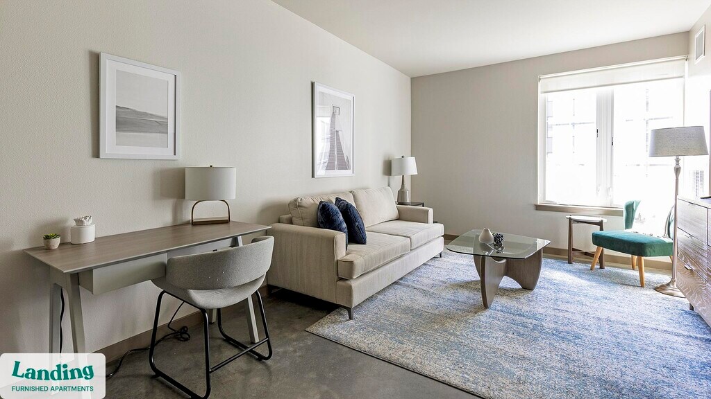 Landing offers flexible lease terms from weeks to months. Please always visit our website or contact us for the latest pricing & availability. Stay longer, save more: 6-Month Minimum base rent: starts at $2025/mo 12-Month Minimum base rent: starts at $1777/mo Landing offers flexible leases across a network of over 35,000 fully-furnished apartments throughout 375+ cities so you can rent on your terms, practically anywhere, and avoid the hassle of paying deposits or application fees. Visit to learn about all the benefits of a Landing membership, see our competitive up-to-date pricing, explore available apartments, take virtual tours, and make reservations online without jumping through traditional rental hoops. Landing's apartments at Bridgetown Lofts are designed for comfortable, easy living, with the ability to stay as long as you like. Experience living with Landing Every apartment is outfitted with all the modern essentials including: custom-designed furnishings, a fully-equipped kitchen with deluxe stainless steel appliances, a gourmet coffee maker, premium linens, Smart TVs, and incredibly fast, reliable internet for working from home. When you live with Landing, you'll enjoy a hassle-free experience with the added benefit of 24/7 access to our dedicated member experience team. Some of the nitty-gritty: a background check and proof of income are required; we're completely smoke-free; bundled utility packages and pricing vary based on length of stay; pet-friendly options available; listed price reflects a 12-month minimum stay.