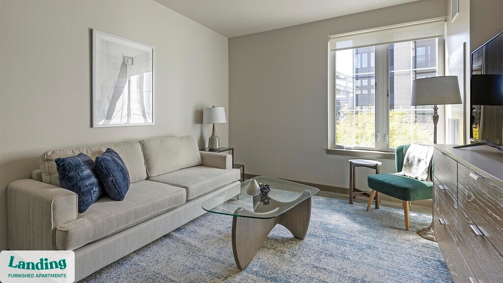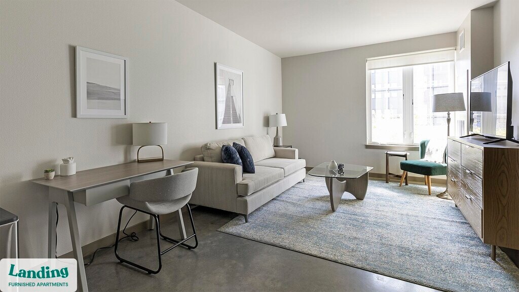 Landing offers flexible lease terms from weeks to months. Please always visit our website or contact us for the latest pricing & availability. Stay longer, save more: 6-Month Minimum base rent: starts at $1931/mo 12-Month Minimum base rent: starts at $1806/mo Landing offers flexible leases across a network of over 35,000 fully-furnished apartments throughout 375+ cities so you can rent on your terms, practically anywhere, and avoid the hassle of paying deposits or application fees. Visit to learn about all the benefits of a Landing membership, see our competitive up-to-date pricing, explore available apartments, take virtual tours, and make reservations online without jumping through traditional rental hoops. Landing's apartments at Bridgetown Lofts are designed for comfortable, easy living, with the ability to stay as long as you like. Experience living with Landing Every apartment is outfitted with all the modern essentials including: custom-designed furnishings, a fully-equipped kitchen with deluxe stainless steel appliances, a gourmet coffee maker, premium linens, Smart TVs, and incredibly fast, reliable internet for working from home. When you live with Landing, you'll enjoy a hassle-free experience with the added benefit of 24/7 access to our dedicated member experience team. Some of the nitty-gritty: a background check and proof of income are required; we're completely smoke-free; bundled utility packages and pricing vary based on length of stay; pet-friendly options available; listed price reflects a 12-month minimum stay.
