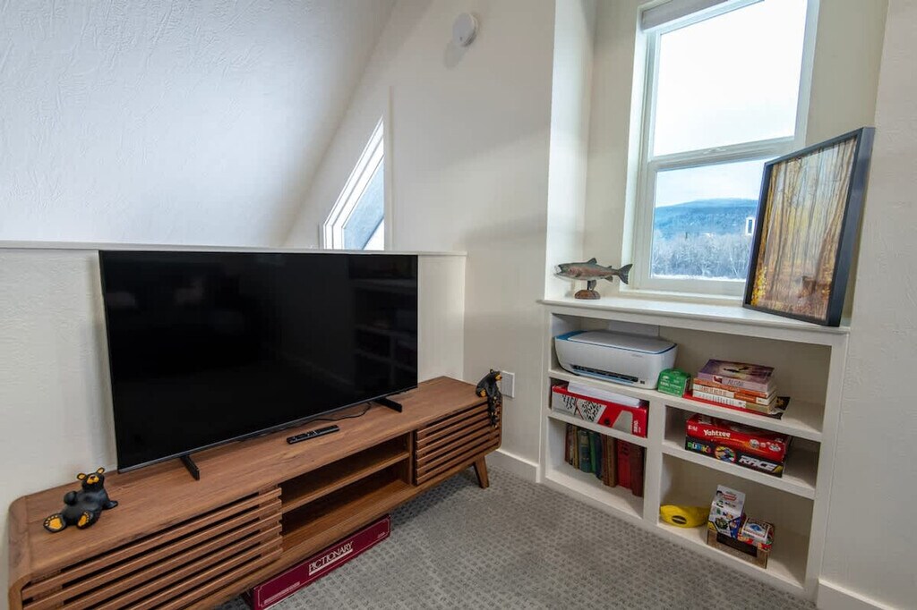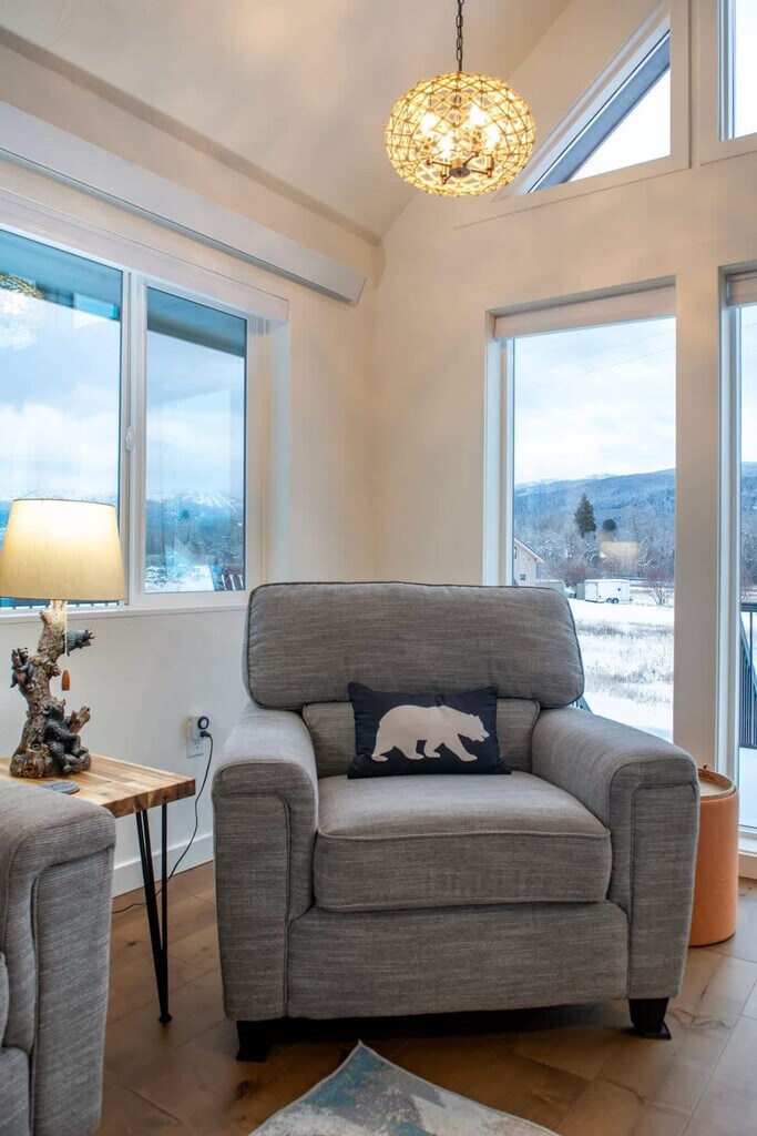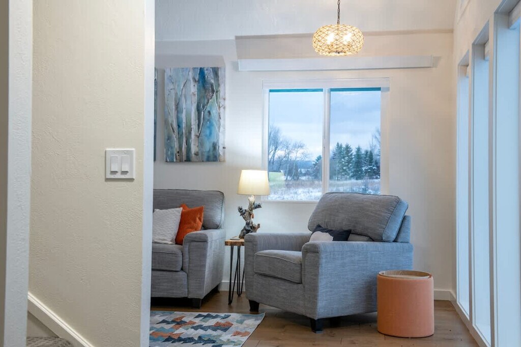 Welcome to the Rocking Chair Retreat, your year-round adventure base. This beautifully remodeled three-story home is just off Ski Hill Road, offering one of the closest stays to Grand Targhee Resort while providing modern comfort and thoughtful design. Perfect for families and groups, this home is your ideal base for exploring Teton Valley in every season. The Rocking Chair Retreat is thoughtfully designed with multiple spaces for comfort and entertainment. The basement features a private king bedroom with an en-suite bathroom, a cozy lounge with arcade-style games, a TV for movie nights, and laundry facilities. On the main floor, an open-concept living area with large east-facing windows showcases breathtaking views of the Teton Range, a fully stocked kitchen, and a queen bedroom with a shared bathroom. The loft offers a fun kid-friendly space with a full-over-full bunk bed, a TV, and a hangout area open to the main floor below. Whether you're cozying up in front of the TV, playing games in the basement, or soaking in the views from the living room, there’s a space for everyone to enjoy at the Rocking Chair Retreat. Enjoy full garage access year-round, making it easy to store your skis, bikes, fishing gear, and outdoor equipment. In winter, keep your car warm and snow-free before hitting the slopes at Grand Targhee Resort. In summer, store your bikes, kayaks, and hiking gear so you’re always ready for the next adventure. The Rocking Chair Retreat is ideally situated to explore some of the most stunning destinations in the region. Yellowstone and Grand Teton National Parks are easily accessible for day trips filled with wildlife, scenic drives, and world-famous hikes. Grand Targhee Resort is just minutes away, offering legendary powder skiing, mountain biking, and outdoor concerts. A scenic drive over Teton Pass leads to Teton Village, Jackson Hole, and iconic Wyoming experiences. Downtown Driggs, ID, is a quick drive away, offering a charming mountain town full of local restaurants, breweries, and boutique shops. Guests are encouraged to treat the home as their own and be respectful of the rules, neighbors, and local community. The number of people at the property should not exceed the maximum sleeping capacity. Quiet hours are from 9 pm to 8 am. No events, parties, large gatherings, weddings, smoking, or vaping are allowed in the home or on the decks. An additional charge will be applied if any smoking-related waste is found on the property. Exterior lights should be turned off at night to preserve the dark skies. A maximum of three licensed vehicles is allowed in the driveway and garages. No riding snow machines, dirt bikes, or ATVs in the subdivision or at the rental property. Candles or incense should not be burned in the home, and fireworks are prohibited on the premises. All main entry doors should be locked when not occupied. Fines will apply for violations, including but not limited to leaving garbage in the house or litter on the grounds, failure to disclose pets, smoking in the house or garage, failure to follow house rules and respect posted signs, failure to follow check-out procedure, or violations of local laws. A minimum $500 fine will be imposed for smoking, vaping, or marijuana use in the house or garage, violation of house rules, posted signs, laws, or failure to vacate at check-out time. The home is equipped with smart TVs and Wi-Fi throughout for modern convenience, ensuring you stay connected during your stay.