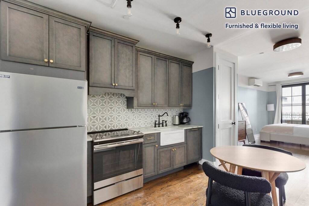 Show up and start living from day one in New York with this cozy studio Blueground apartment. You’ll love coming home to this thoughtfully furnished, beautifully designed, and fully equipped Williamsburg home. (ID #NYC1938) The advertised rate of $3,270/month is the lowest available price, based on a 1 month(s) and 3 day(s) stay with a move-in date of December 20, 2025. If you’re looking for a 1-year stay, the rate is $4,750/month. Rates vary depending on the duration of stay, season, and other parameters. For exact pricing and additional pricing components, please visit our website and enter your desired move-in and move-out dates. The rate is applicable when billed upfront; it can be higher if billed in multiple payments. Brokers are welcome to reach out. Were you looking for an unfurnished lease? Try Blueground instead and upgrade from unfurnished to furnished living: - Furnished at rates comparable to unfurnished - No setup or furniture costs - save thousands - Move-in ready - save time, just bring your suitcase Designed with you in mind Gorgeous furniture, fully equipped kitchen, smart TV, and a premium wireless speaker are just a few of the amenities you’ll find inside this studio apartment. Ideally located in New York, you’ll find a lot to love outside as well. When you’re ready to relax, you’ll be happy to discover every Blueground bedroom comes with superior quality mattresses, luxury linens, and cozy towels. We handle everything so you can simply show up and start living. This apartment also offers in-apartment laundry. Sleeping arrangements Queen Bed, 63in/160cm Amenities Building amenities unique to this studio apartment include an on-site: - Dryer - Elevator - Game room - Washing machine - Lounge - Pets allowed Arrival and ongoing support The entire apartment is yours to enjoy! Throughout your stay, you’ll have access to our Client Experience team through the Blueground App. You can schedule additional cleanings, submit maintenance requests, and view our neighborhood recommendations with just a few taps. We’ll share all details upon confirmation of your stay. Ideally Located This furnished apartment is situated in Williamsburg, known as Brooklyn’s creative outlet. Residents vary from artists and young professionals working in the media or entertainment industries to families. Williamsburg Bridge is great for long strolls, running or biking. Over the weekend, visit Bedford Avenue, which is constantly buzzing with trendy boutiques, fine dining, outdoor day parties and a thriving music scene. East River State Park also offers a great sunset over the Manhattan skyline. Embarking on the L train, you can be in the heart of Manhattan in just a few minutes. Also the M and J trains make it easy to get to other downtown neighborhoods. Other things to note Building amenities may have an extra cost. This Blueground apartment has flexible lease options, allowing you to book it for one month, a year, or more. Pets are welcome, though weight limits and breed restrictions apply and may incur fees. Brokes CYOF. We take great pride in ensuring every photo displayed is shot in our own units with our actual furnishings. That said, we regularly refresh our decor and furniture arrangement, which may differ from what’s pictured. [SI]