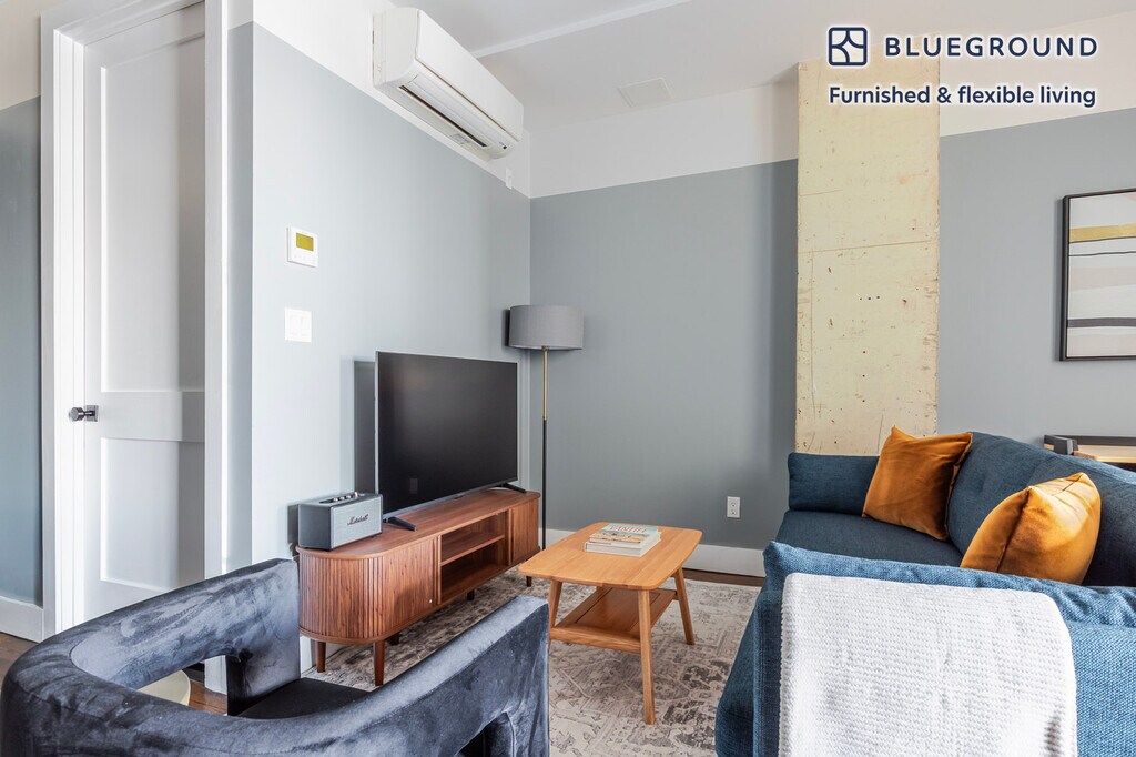 Feel at home wherever you choose to live with Blueground. You’ll love this beautiful Williamsburg furnished two bedroom apartment with its modern decor, fully equipped kitchen, and lovely living room. Ideally located, you’re close to all the best that New York has to offer! (ID #NYC2079) The advertised rate of $4,740/month is the lowest available price, based on a 2 month(s) and 22 day(s) stay with a move-in date of November 1, 2025. If you’re looking for a 1-year stay, the rate is $6,140/month. Rates vary depending on the duration of stay, season, and other parameters. For exact pricing and additional pricing components, please visit our website and enter your desired move-in and move-out dates. The rate is applicable when billed upfront; it can be higher if billed in multiple payments. Brokers are welcome to reach out. Were you looking for an unfurnished lease? Try Blueground instead and upgrade from unfurnished to furnished living: - Furnished at rates comparable to unfurnished - No setup or furniture costs - save thousands - Move-in ready - save time, just bring your suitcase Designed with you in mind Gorgeous furniture, fully equipped kitchen, smart TV, and a premium wireless speaker are just a few of the amenities you’ll find inside this two bedroom apartment. Ideally located in New York, you’ll find a lot to love outside as well. When you’re ready to relax, you’ll be happy to discover every Blueground bedroom comes with superior quality mattresses, luxury linens, and cozy towels. We handle everything so you can simply show up and start living. This apartment also offers in-apartment laundry. Sleeping arrangements Queen Bed, 63in/160cm Queen Bed, 63in/160cm Amenities Building amenities unique to this two bedroom apartment include an on-site: - Dryer - Elevator - Game room - Washing machine - Lounge - Pets allowed Arrival and ongoing support The entire apartment is yours to enjoy! Throughout your stay, you’ll have access to our Client Experience team through the Blueground App. You can schedule additional cleanings, submit maintenance requests, and view our neighborhood recommendations with just a few taps. We’ll share all details upon confirmation of your stay. Ideally Located This furnished apartment is situated in Williamsburg, known as Brooklyn’s creative outlet. Residents vary from artists and young professionals working in the media or entertainment industries to families. Williamsburg Bridge is great for long strolls, running or biking. Over the weekend, visit Bedford Avenue, which is constantly buzzing with trendy boutiques, fine dining, outdoor day parties and a thriving music scene. East River State Park also offers a great sunset over the Manhattan skyline. Embarking on the L train, you can be in the heart of Manhattan in just a few minutes. Also the M and J trains make it easy to get to other downtown neighborhoods. Other things to note Building amenities may have an extra cost. This Blueground apartment has flexible lease options, allowing you to book it for one month, a year, or more. Pets are welcome, though weight limits and breed restrictions apply and may incur fees. Brokes CYOF. We take great pride in ensuring every photo displayed is shot in our own units with our actual furnishings. That said, we regularly refresh our decor and furniture arrangement, which may differ from what’s pictured. [SI]