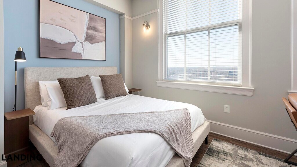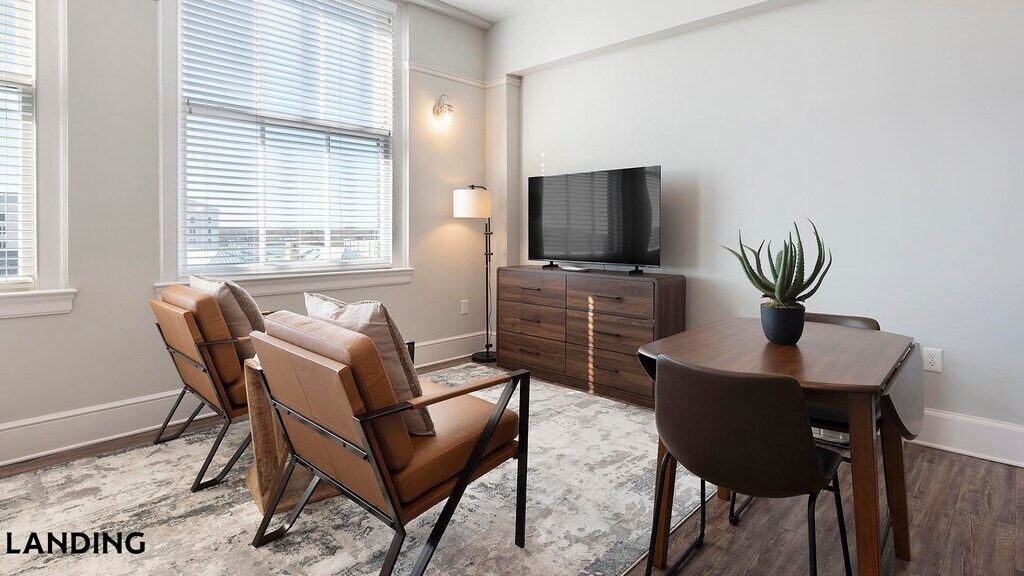 Landing is a top-rated, fully furnished apartment network with thousands of homes across 250+ U.S. cities. With premium amenities, a mobile app to manage your stay, and 24/7 support. Our apartments have everything you need for monthly and longer stays.: 6-Month Minimum base rent: starts at $1860/mo 12-Month Minimum base rent: starts at $1432/mo Landing's apartments at The Montgomery are designed for comfortable, easy living, with the ability to stay as long as you like. All Landing apartments include: - Fast Wi-Fi - Stylish furnishings - Fully-stocked bathroom - Smart TVs - Comfortable bed - Professionally cleaned - Guest support Stay longer for cheaper! The longer you stay, the bigger your discount. Price advertised is for a 12-month stay, including all utilities and fees, and may vary based on availability. We manage multiple units at this property. While all feature a similar style and furnishings, the layout and specific design elements may vary slightly from the photos provided. Some of the nitty-gritty: a background check and proof of income are required; we're completely smoke-free; pet-friendly options are available; parking is subject to availability.