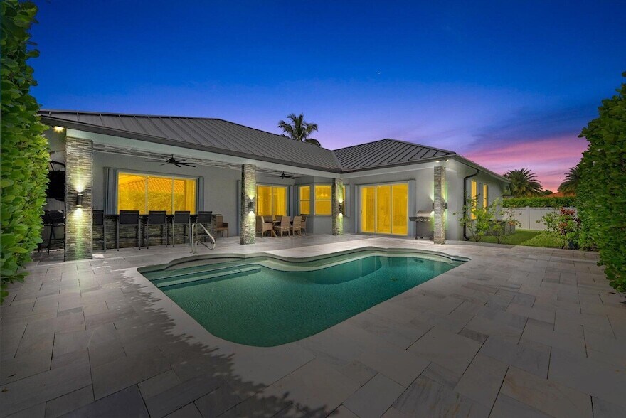 Available for Seasonal or annual rental. Claim your piece of paradise with this Wellington Charmer. Renovated; 4 main bedrooms and 3.5 bathrooms + a extra bedroom/den and side door. The fully fenced-in backyard is a private oasis with mature landscaping, crisp blue pool, fully equipped patio bar with 70in TV. Large covered lanai with LED lights to brighten up your evening entertaining. 2 car garage with rubber flooring, and custom storage. Extended circular driveway the maximize guest parking spots. Open triple split floor plan. offering a open kitchen to the family room and a formal living room connected to a formal dining room. Conveniently located just a short distance from the prestigious Winter Equestrian Festival (WEF) and all the seasonal equestrian events