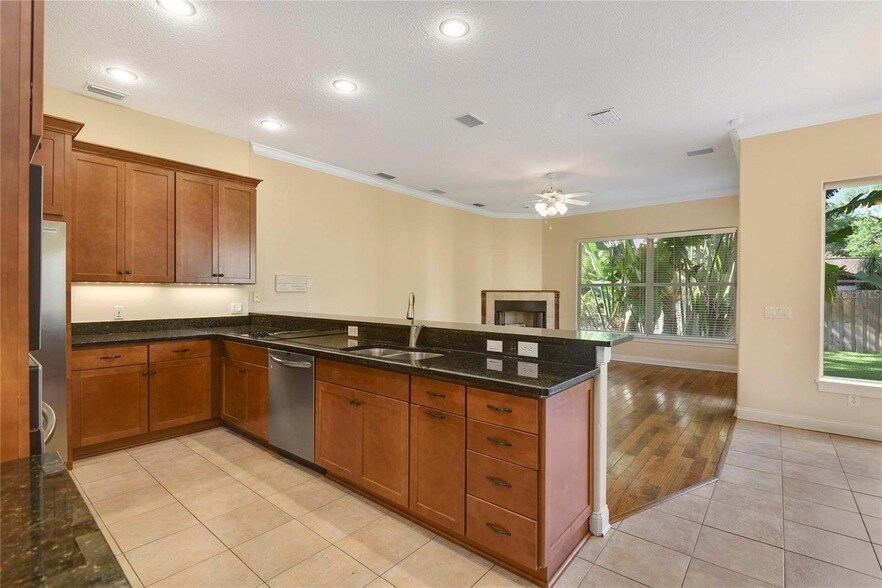 Don t miss this rare chance to live on the picturesque brick streets of Olde Winter Park just minutes from Park Avenue s premier shopping and dining.This beautifully updated 5-bedroom, 4-bath home features a spacious downstairs primary suite with stunning hardwood floors and soaring vaulted ceilings. A flexible main-level office or guest room adds versatility to the layout. The renovated kitchen is a chef s delight, showcasing wood cabinetry, granite countertops, ceramic tile flooring, and stainless steel appliances all seamlessly opening to a generous family room with a cozy corner fireplace. Upstairs, you ll find three well-sized bedrooms and a charming second-story balcony overlooking a large, private lot perfect for relaxing or entertaining. Located within the desirable Winter Park school district and just a short bike ride to the zoned elementary school, this home also includes all appliances (washer & dryer included) and full lawn care for added convenience. First, last and security are required.
