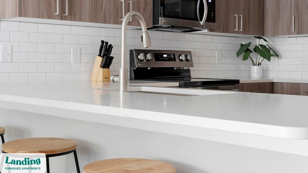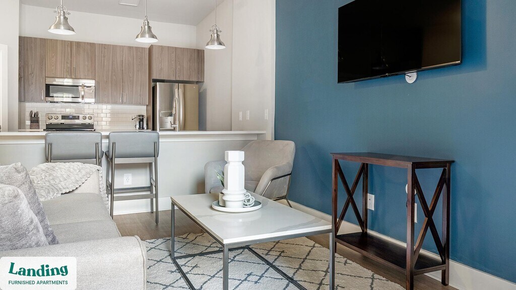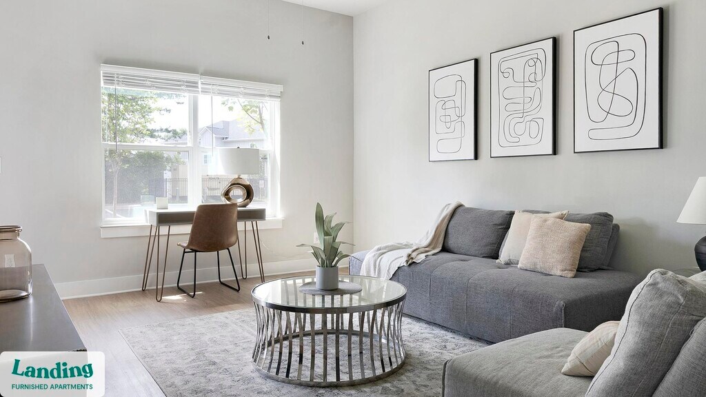 Landing offers flexible lease terms from weeks to months. Please always visit our website or contact us for the latest pricing & availability. Stay longer, save more: 6-Month Minimum base rent: starts at $2405/mo 12-Month Minimum base rent: starts at $2120/mo Landing offers flexible leases across a network of over 35,000 fully-furnished apartments throughout 375+ cities so you can rent on your terms, practically anywhere, and avoid the hassle of paying deposits or application fees. Visit to learn about all the benefits of a Landing membership, see our competitive up-to-date pricing, explore available apartments, take virtual tours, and make reservations online without jumping through traditional rental hoops. Landing's apartments at The Delaney at East Park are designed for comfortable, easy living, with the ability to stay as long as you like. Experience living with Landing Every apartment is outfitted with all the modern essentials including: custom-designed furnishings, a fully-equipped kitchen with deluxe stainless steel appliances, a gourmet coffee maker, premium linens, Smart TVs, and incredibly fast, reliable internet for working from home. When you live with Landing, you'll enjoy a hassle-free experience with the added benefit of 24/7 access to our dedicated member experience team. Some of the nitty-gritty: a background check and proof of income are required; we're completely smoke-free; bundled utility packages and pricing vary based on length of stay; pet-friendly options available; listed price reflects a 12-month minimum stay.