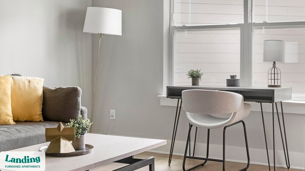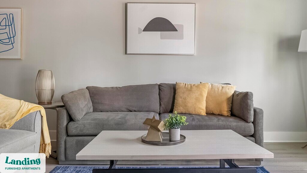 Landing offers flexible lease terms from weeks to months. Please always visit our website or contact us for the latest pricing & availability. Stay longer, save more: 6-Month Minimum base rent: starts at $2422/mo 12-Month Minimum base rent: starts at $2105/mo Landing offers flexible leases across a network of over 35,000 fully-furnished apartments throughout 375+ cities so you can rent on your terms, practically anywhere, and avoid the hassle of paying deposits or application fees. Visit to learn about all the benefits of a Landing membership, see our competitive up-to-date pricing, explore available apartments, take virtual tours, and make reservations online without jumping through traditional rental hoops. Landing's apartments at The Delaney at East Park are designed for comfortable, easy living, with the ability to stay as long as you like. Experience living with Landing Every apartment is outfitted with all the modern essentials including: custom-designed furnishings, a fully-equipped kitchen with deluxe stainless steel appliances, a gourmet coffee maker, premium linens, Smart TVs, and incredibly fast, reliable internet for working from home. When you live with Landing, you'll enjoy a hassle-free experience with the added benefit of 24/7 access to our dedicated member experience team. Some of the nitty-gritty: a background check and proof of income are required; we're completely smoke-free; bundled utility packages and pricing vary based on length of stay; pet-friendly options available; listed price reflects a 12-month minimum stay.