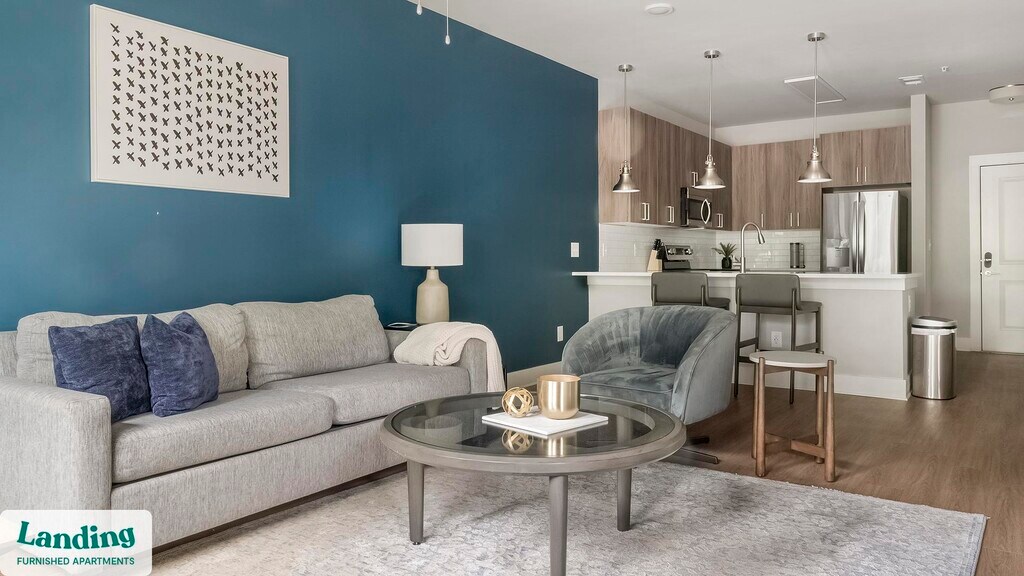 Landing offers flexible lease terms from weeks to months. Please always visit our website or contact us for the latest pricing & availability. Stay longer, save more: 6-Month Minimum base rent: starts at $2422/mo 12-Month Minimum base rent: starts at $2105/mo Landing offers flexible leases across a network of over 35,000 fully-furnished apartments throughout 375+ cities so you can rent on your terms, practically anywhere, and avoid the hassle of paying deposits or application fees. Visit to learn about all the benefits of a Landing membership, see our competitive up-to-date pricing, explore available apartments, take virtual tours, and make reservations online without jumping through traditional rental hoops. Landing's apartments at The Delaney at East Park are designed for comfortable, easy living, with the ability to stay as long as you like. Experience living with Landing Every apartment is outfitted with all the modern essentials including: custom-designed furnishings, a fully-equipped kitchen with deluxe stainless steel appliances, a gourmet coffee maker, premium linens, Smart TVs, and incredibly fast, reliable internet for working from home. When you live with Landing, you'll enjoy a hassle-free experience with the added benefit of 24/7 access to our dedicated member experience team. Some of the nitty-gritty: a background check and proof of income are required; we're completely smoke-free; bundled utility packages and pricing vary based on length of stay; pet-friendly options available; listed price reflects a 12-month minimum stay.