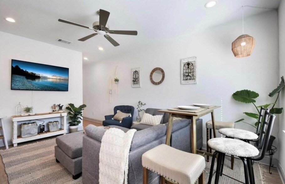 Gorgeous townhouse located in beautiful Point Venture on the north shore of Lake Travis. This two-story comfy home offers 2 bedrooms and loft designed as a 3rd bedroom with a bunk bed - Totals 4 beds and 2.5 bathrooms. The primary bedroom with private bath is downstairs while the 2nd bedroom and loft with bunk beds are upstairs. This cute home also offers a fun outdoor patio with yard area for activities. Also, includes a grill for cookouts. Comes fully furnished. AMENITIES: Waterfront Park, 2 Boat Ramps, Playground, Pavilion, Basketball & Badminton Court, Fishing, Floating Restaurant, Golf Course (free for residents, walk/bike on paths 7pm-7am), 2 Dry Storage Areas for boats/RVs/trailers, Marina: boat slips & gas, (gas discounted for PV homeowners), Tennis Courts: lessons & leagues, Frisbee Golf, Pickle Ball, Gym, Library, Meeting Room, July 4th Parade & Festivities, Meal Get Togethers, Book Clubs, Parents Club, Live Music Venues, Trivia Nights, Bunko and so much more!!!