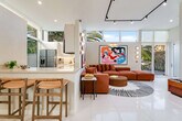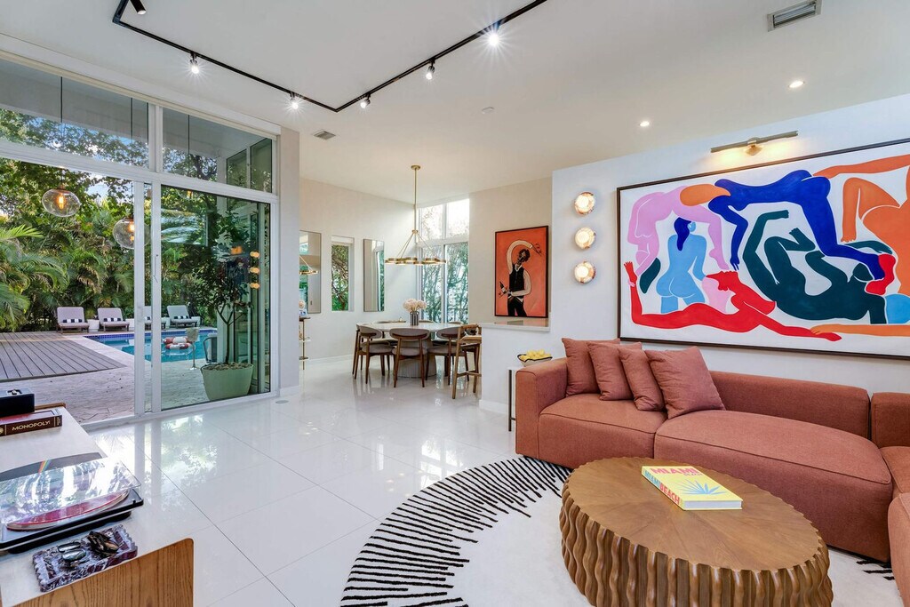 The advertised rate of $17,868/month is the lowest available price, based on a 1 month(s) stay with a move-in date of September 8, 2026. Rates vary depending on the duration of stay, season, and other parameters. For exact pricing and additional pricing components, please visit our website and enter your desired move-in and move-out dates. The rate is applicable when billed upfront; it can be higher if billed in multiple payments. Feel at home in this one-of-a-kind retreat in Miami, filled with custom art, murals, and spaces designed for living beautifully. This home features a rooftop terrace with sunset city views, an outdoor movie projector for open-air film nights, a summer kitchen and garden dining area, a rooftop gym, a fire pit, an aerial yoga hammock and lounge spaces, and a large heated pool surrounded by lush greenery. The fully equipped kitchen includes modern appliances, a dishwasher, a coffee maker, a toaster, and everything needed for cooking and gathering at home. The spacious living area features custom artwork, a smart TV, and a record player, with an open flow into the dining area with seating for eight. Pets are welcome with a $150 fee per pet. Convenient parking is available on the premises for up to two vehicles. Nestled at the crossroads of Miami’s most iconic neighborhoods, this home is located between Calle Ocho, Coconut Grove, and Coral Gables. Miami International Airport is a 15-minute drive away, Key Biscayne & Crandon Park are under 10 minutes away, Miami Beach is 20 minutes away, Brickell is less than 10 minutes away, Little Havana is 5 minutes away, Wynwood is 19 minutes away and the Design District is 23 minutes away. Shenandoah is known for its lush, tree-lined streets and Mediterranean-style architecture, offering a central home base for exploring the city. Check-in is after 4 PM and check-out is before 11 AM. Strict no-smoking policy, low noise levels are expected post 10 PM, and parties and large gatherings are prohibited. The number of guests cannot exceed those specified at booking. No additional visitors or overnight guests are allowed without prior approval. Violations incur a $50 fee per person, and your stay may be terminated without refund. All guests must be 21 years or older unless accompanied by a parent or pre-approved. Any smoke smell will incur a $100 cleaning fee. The master bedroom, second bedroom, third bedroom, and fourth bedroom each include a work desk. [SI]