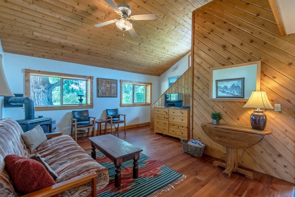 Craving a tranquil escape in the heart of the spectacular Teton Mountain Range? This amazing two-bedroom plus loft cabin is the perfect vacation destination for you. Nestled at the base of the majestic Teton Mountain Range in the northern expanse of Teton Valley, Idaho, this historic cabin blends rustic charm with modern comforts, offering a picturesque retreat for those seeking solace at the base of the Tetons. Imagine waking up to the awe-inspiring vista of the Teton Mountain Range from the back deck, enveloped by venerable cottonwood trees, willows, and fragrant lilac bushes. As daylight fades, grill a delectable dinner against the backdrop of the mountains' rosy hues, or take a leisurely stroll through nearby pastures where gentle horses graze. The cabin offers a glimpse into the past with two cozy bedrooms on the lower floor. The primary bedroom features a queen-size bed, while the guest room welcomes visitors with twin beds, inviting a restful slumber after a day of exploration. Ascend the stairs off of the living room, where a queen-sized bed awaits in the loft, offering privacy from the living room below. The heart of this cabin lies in its well-equipped kitchen, adorned with all the conveniences needed to create culinary delights. A gas oven and stove stand ready to transform fresh ingredients into savory feasts, while memories are shared around the dining table. In the living room, a smart TV beckons for relaxation, while the warmth of a propane fireplace kindles a cozy ambiance on winter evenings. The cabin's interior exudes a sense of timelessness, a reminder of simpler days spent in harmony with the surroundings. For those seeking adventure, the cabin's proximity to Yellowstone and Grand Teton National Parks invites exploration during the summer months. When winter's embrace arrives, the legendary slopes of Grand Targhee ski resort are a mere 22 minutes away, promising exhilarating days on powdery slopes. Or, simply strap on a pair of cross-country skis and take off from the front porch through the property. Distances to National Parks include Yellowstone - West Entrance at 1 hr 35 min (90.1 miles), Yellowstone - South Entrance at 2 hr 45 min (119 miles), and Grand Teton at 1 hr 5 min (45.1 miles). You can also access hiking and activities in the Tetons here in Teton Valley, affectionately called the quiet side of the Tetons. Distances to Ski Resorts include Grand Targhee Ski and Summer Resort at 29 min (16.9 miles) and Jackson Hole Mountain Resort at 57 min (41.4 miles). Distances to Regional Airports include Idaho Falls, ID (IDA) at 1 hr 11 min (70.3 miles), Jackson, WY (JAC) at 1 hr 10 min (49.6 miles), and Bozeman, MT (BZN) at 3 hr 19 min (181 miles). Distances to area towns include Driggs, ID at 11 min (7.4 miles), Victor, ID at 22 min (15.8 miles), Jackson, WY at 57 min (40.2 miles), and Teton Village, WY at 57 min (41.4 miles). Treat this home as if it were your own and be respectful of the rules, neighbors, and local community at the base of the Tetons. The number of people at the property should not exceed the maximum sleeping capacity. Quiet hours are from 9 pm to 8 am. No events are allowed, including parties, large gatherings, and weddings. No smoking or vaping in the home or on the decks. An additional charge will be applied if any butts are found on the property. Turn all exterior lights off at night to enjoy the dark skies. Drive slowly in the neighborhood in respect of children, pets, and wildlife. A maximum of three licensed vehicles is allowed in the driveway and garages. No riding snow machines, dirt bikes, or ATVs in the subdivision or at the rental property. Do not burn candles or incense in the home. No fireworks on the premises. Keep all main entry doors locked when not occupied. Fines will apply for violations including but not limited to: leaving garbage in the house or litter on grounds, failure to disclose or clean up after pets, smoking in the house or garage, failure to follow house rules and respect posted signs, failure to follow check-out procedure, mistreatment of hot tub, or violations of local laws. A minimum $500 fine applies for smoking, vaping, or marijuana use in the house, violation of house rules, posted signs, laws, or failure to vacate at check-out time. A team is available 24/7 for any urgent needs, ensuring a safe, secure, and fun stay.