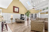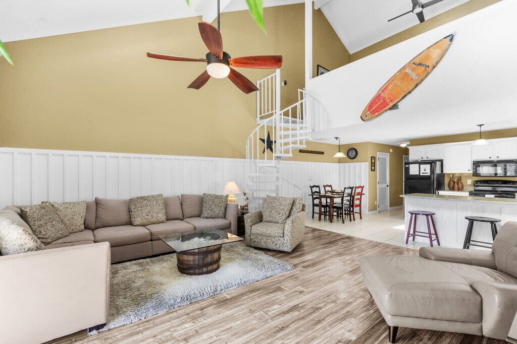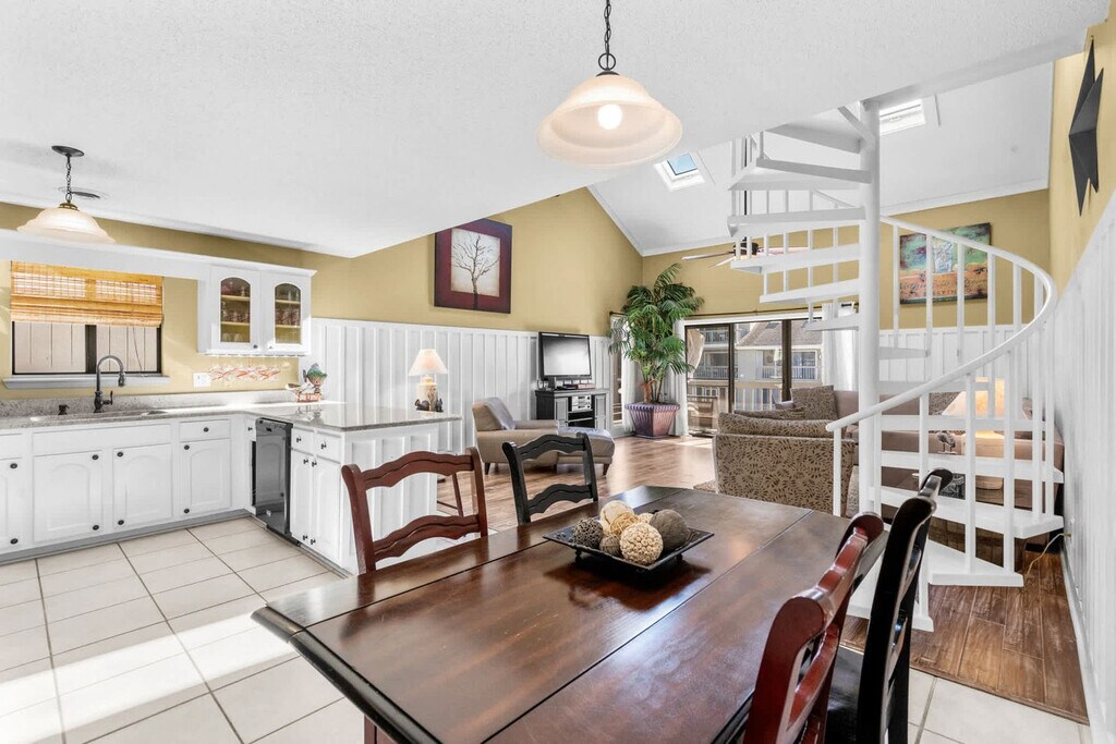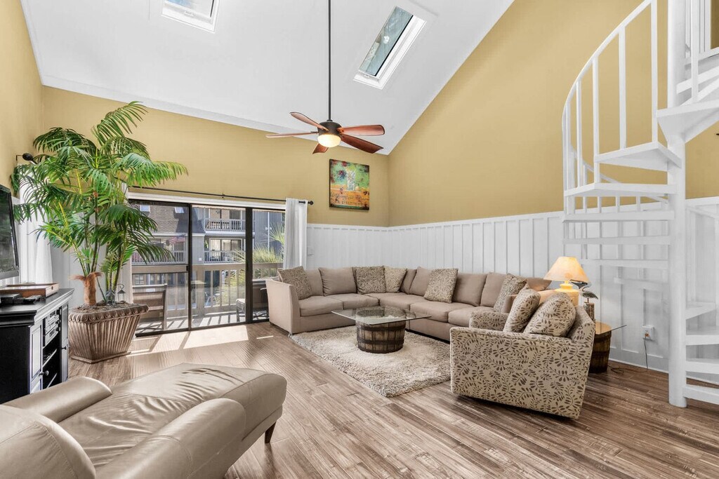 The advertised rate of $2,565/month is the lowest available price, based on a 1 month(s) stay with a move-in date of April 5, 2026. Rates vary depending on the duration of stay, season, and other parameters. For exact pricing and additional pricing components, please visit our website and enter your desired move-in and move-out dates. The rate is applicable when billed upfront; it can be higher if billed in multiple payments. Feel at home in this gorgeous loft-style 2-bedroom, 2-bath condo located in Surfside Beach's Golf Colony. Enjoy breakfast and coffee on the deck overlooking the pool and grilling areas. The downstairs bedroom features a queen bed, closet with blanket and extra pillows, and a 45" flat-screen TV with premium cable, as well as an en suite bath with a huge stand-up shower and beautiful bronze high-end finishes. The open-plan living/kitchen/dining area is flooded with natural light from vaulted ceilings and skylights. The kitchen has granite countertops, all modern appliances, and high-end finishes. There is a large and comfy sectional sofa, leather lounge chair and ottoman, a large dining table with seating for 4, and additional bar stool seating for 3 adjacent to the kitchen. Upstairs in the loft suite, you will find a king-size bed with premium mattress, twin bed with a concealed trundle, walk-in closet, and additional en suite bathroom with a tub/shower combo and premium fixtures and vanity. One dedicated parking space is permitted in either the main front lot or side lots, and the parking pass must be displayed. There is an overflow lot across the street and next to the tennis courts for any additional vehicle. Located between Business Hwy 17 and Hwy 17 Bypass, Golf Colony at Deerfield is in the middle of Surfside Beach with easy access to restaurants, shopping, and tons of amenities. There are 3 grocery stores, Target, and Walmart within 3 miles or 10 minutes drive. Some favorite restaurants like the Wooden Spoon, Surfside Pizza, The Bar-B-Q House, and Johnny D's Waffles are right around the corner. The world-famous Murrells Inlet Marsh Walk is about 15 minutes south, and there are additional restaurants and great shopping destinations in the Market Common. Quiet hours are between 11 pm and 7 am as per Surfside Beach ordinance. Guests must be at least 25 years old to book. Smoking and pets are not permitted. Check-in time is at 4:00 pm, and check-out is at 10:00 am. The maximum occupancy for this property is 5 people, including infants and children. Please consider your neighbors and keep noise at a reasonable sound level. [SI]