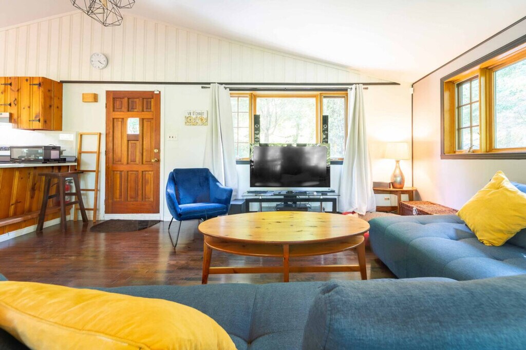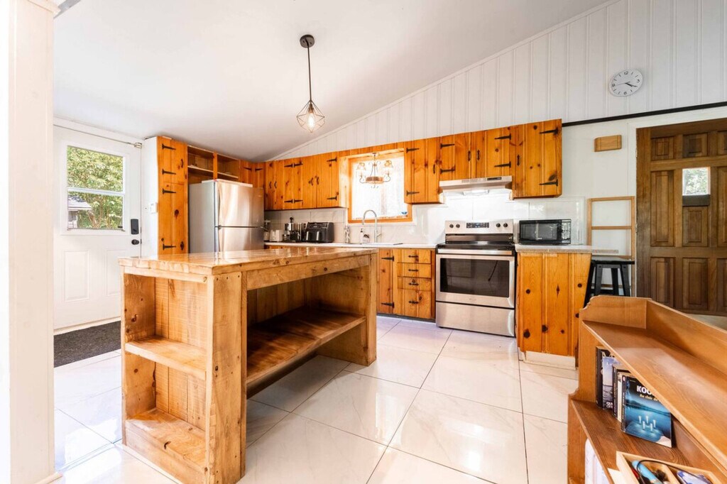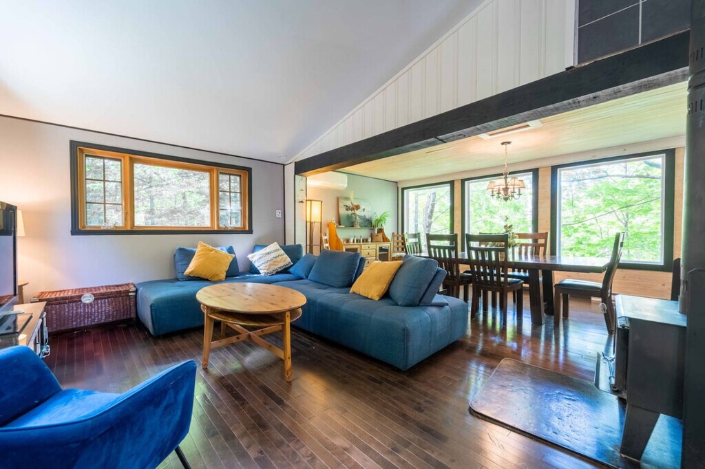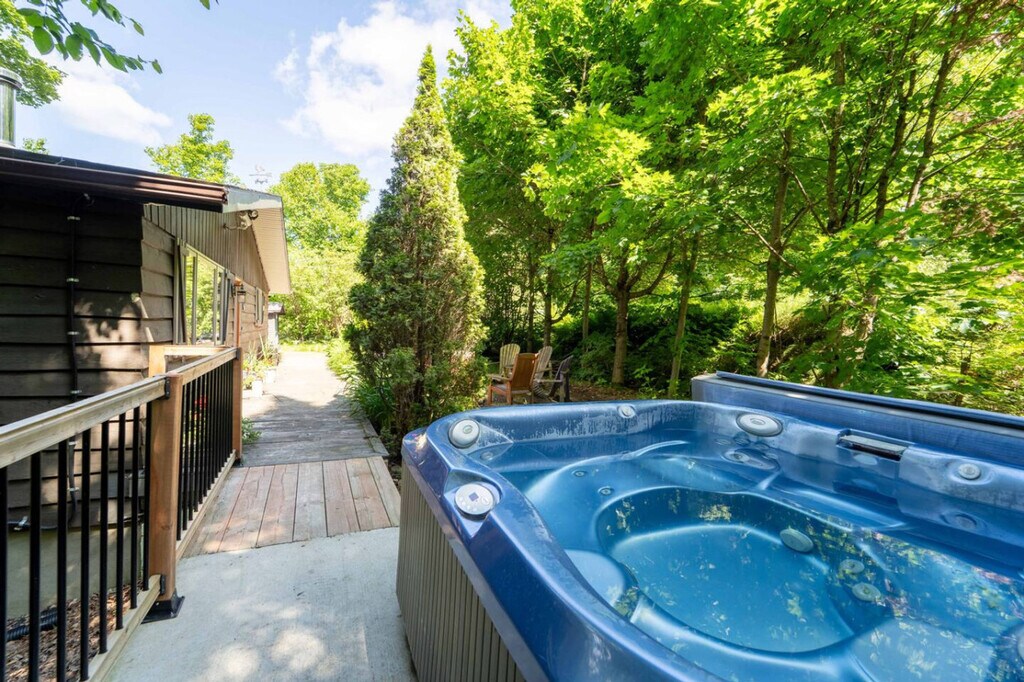 Experience a rustic-chic getaway in Saint-Adolphe-d’Howard with this warm chalet that comfortably accommodates up to 12 guests. Featuring a hot tub, outdoor firepit, and a fully equipped kitchen, this charming retreat is perfect for relaxing with family or friends. Nestled in the heart of the Laurentians, the chalet offers comfort, nature, and unforgettable memories year-round, just a 10-minute walk to the lake. This cozy chalet boasts two spacious bedrooms and seven beds, including two queen beds, two twin bunk beds, one double air mattress, and two single sofa beds, making it ideal for families and small groups. Enjoy the indoor fireplace for a cozy night in, two full bathrooms with linens and essentials, and a fully equipped kitchen. High-speed fiber Wi-Fi is available, perfect for remote work or streaming, and a washer and dryer are on-site for your convenience. Unwind beneath the stars in the outdoor hot tub on the deck. A maximum of two dogs are allowed, provided they are included in the reservation. Dogs are not allowed on beds or sofas and must never be left alone in the property. Located on Chemin du Domaine, this chalet is just a short 5-minute walk from public lake access, perfect for quiet moments by the water. Only 15 minutes from Saint-Sauveur, you'll be close to everything the Laurentians have to offer, including hiking trails, ski slopes, local shops, and cozy restaurants. Smoking or vaping is strictly prohibited inside the property, and any evidence or smell of cigarettes, vaping, cannabis, or other substances indoors will result in penalty fees. Check-in is from 4:00 PM and check-out is by 11:00 AM. Only registered guests are allowed on the property, and no visitors or unregistered guests are permitted without prior approval. Quiet hours are from 10:00 PM to 8:00 AM, and no parties or events are allowed. Departure instructions must be followed before leaving the property, and failure to comply may result in additional charges. Guests must be 25 years of age or older at the time of booking. The chalet offers high-speed fiber Wi-Fi, making it ideal for remote work or streaming. [SI]