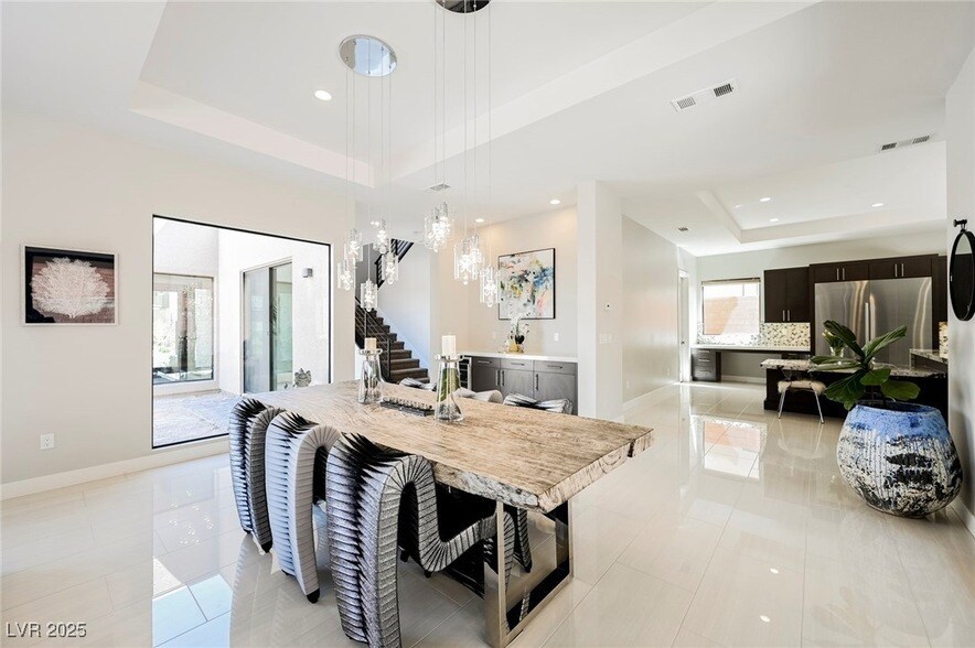 Step inside this contemporary two-story in Sterling Ridge, and you're immediately transported into a world of modern luxury. Form and function intersect in this home, and an elegantly simple black and white decor emphasize its unique artistic aesthetic. Polished white stone flooring grounds the space, while large black-paned windows and sliding glass doors immerse the interiors in natural light. The open floor plan features an expansive great room, kitchen, and bar- designed to entertain. The kitchen boasts espresso-toned cabinets, top-of-the-line appliances, and a combination of polished white quartz and granite countertops. Sliding glass doors lead to both the rear patio and central courtyard. The home sits on nearly a quarter-acre of land. This distinctive residence, built-in 2018, has 3,776 square feet of living space, 4 bedrooms, 4.5 bathrooms, and a 3-car garage.**Home is being offered fully furnished**