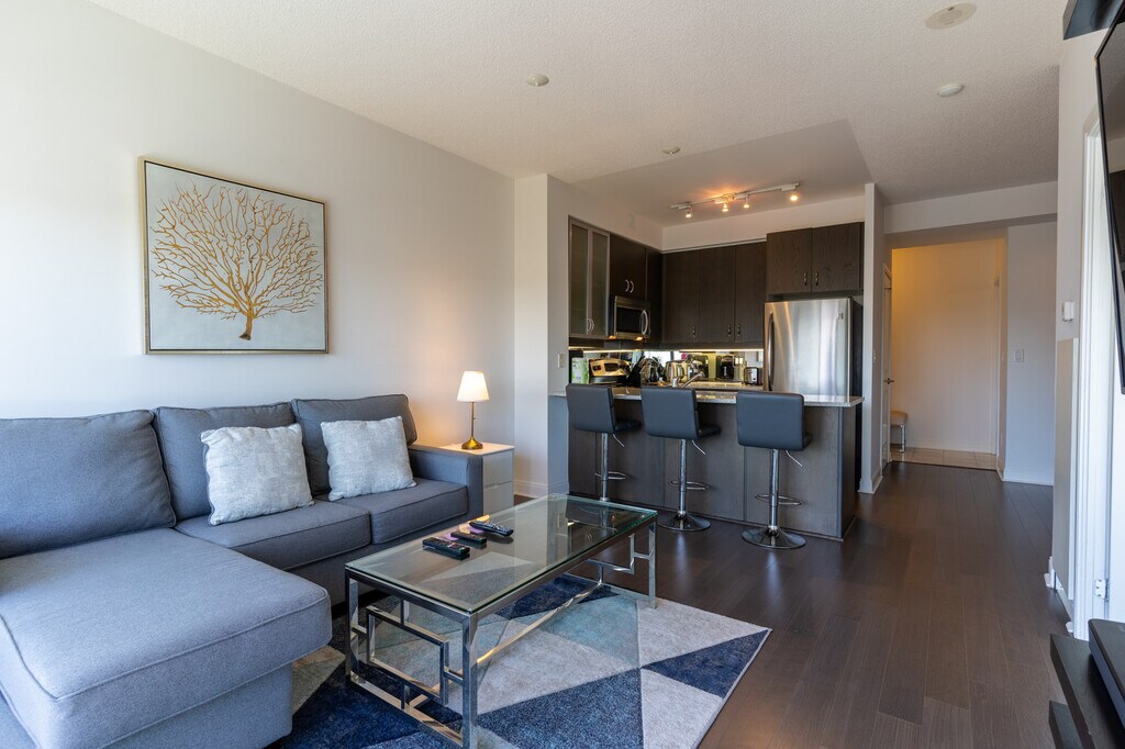 Feel at home in this 1-bedroom, 1-bathroom suite located on Yorkville Avenue, just north of Bloor. This apartment is part of a 36-story glass/concrete high-rise and offers over 700 square feet of floor space, an extra den, and an east-facing balcony. This apartment features granite countertops, stainless steel appliances, and 9-foot ceilings. Extra cleaning is available for $250, and parking is available for $15 per day. A pet cleaning fee of $350 applies. This suite is in the heart of one of Toronto’s most dynamic neighborhoods: Yorkville. Yorkville boasts an eclectic mix of luxury condominium apartment buildings, commercial office towers, five-star hotels, theaters, gourmet restaurants, a high-end shopping district, and picture-perfect Victorian homes. Residents will also have easy access to the TTC at both Bloor and Bay subway station. If residents are keen on enjoying Toronto’s cultural scene, they’re in the right place — they’re just around the corner from the Royal Ontario Museum, the Gardiner Museum, Koerner Hall, and the Varsity movie theatre. Pets are welcome. [SI]