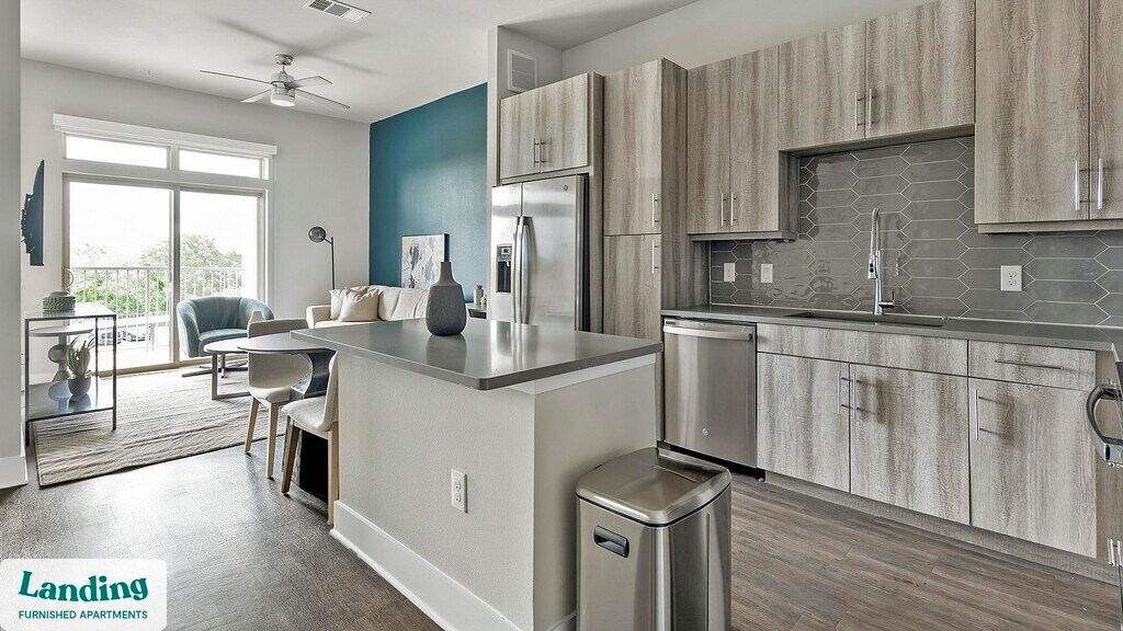 Landing offers flexible lease terms from weeks to months. Please always visit our website or contact us for the latest pricing & availability. Stay longer, save more: 6-Month Minimum base rent: starts at $2428/mo 12-Month Minimum base rent: starts at $2209/mo Landing offers flexible leases across a network of over 35,000 fully-furnished apartments throughout 375+ cities so you can rent on your terms, practically anywhere, and avoid the hassle of paying deposits or application fees. Visit to learn about all the benefits of a Landing membership, see our competitive up-to-date pricing, explore available apartments, take virtual tours, and make reservations online without jumping through traditional rental hoops. Landing's apartments at Arise Riverside are designed for comfortable, easy living, with the ability to stay as long as you like. Experience living with Landing Every apartment is outfitted with all the modern essentials including: custom-designed furnishings, a fully-equipped kitchen with deluxe stainless steel appliances, a gourmet coffee maker, premium linens, Smart TVs, and incredibly fast, reliable internet for working from home. When you live with Landing, you'll enjoy a hassle-free experience with the added benefit of 24/7 access to our dedicated member experience team. Some of the nitty-gritty: a background check and proof of income are required; we're completely smoke-free; bundled utility packages and pricing vary based on length of stay; pet-friendly options available; listed price reflects a 12-month minimum stay.