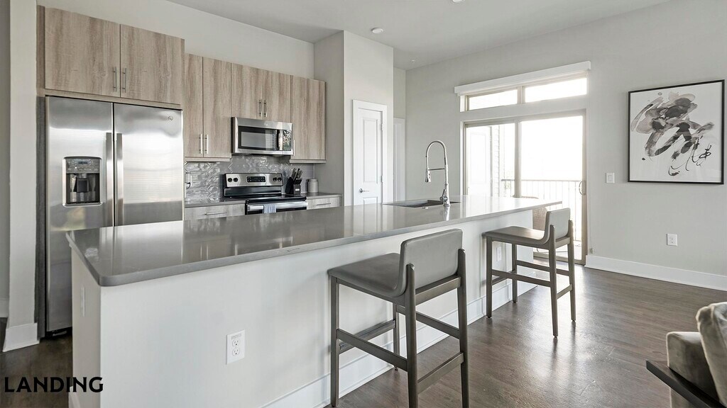 Landing is a top-rated, fully furnished apartment network with thousands of homes across 250+ U.S. cities. With premium amenities, a mobile app to manage your stay, and 24/7 support. Our apartments have everything you need for monthly and longer stays. 6-Month+ Stay base rent: starts at $2400/mo 12-Month+ Stay base rent: starts at $2190/mo Landing's apartments at Arise Riverside are designed for comfortable, easy living, with the ability to stay as long as you like. All Landing apartments include: - Fast Wi-Fi - Stylish furnishings - Fully-stocked bathroom - Smart TVs - Comfortable bed - Professionally cleaned - Guest support Stay longer for cheaper! The longer you stay, the bigger your discount. Price advertised is for a 12-month stay, including all utilities and fees, and may vary based on availability. We manage multiple units at this property. While all feature a similar style and furnishings, the layout and specific design elements may vary slightly from the photos provided. Some of the nitty-gritty: a background check and proof of income are required; we're completely smoke-free; pet-friendly options are available; parking is subject to availability.
