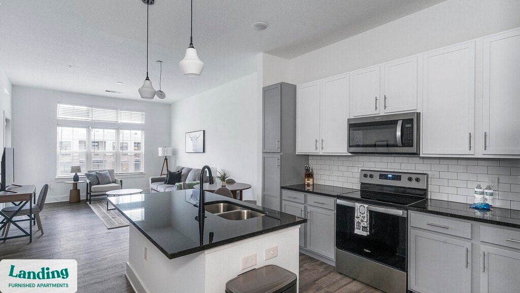 Landing offers flexible lease terms from weeks to months. Please always visit our website or contact us for the latest pricing & availability. Stay longer, save more: 6-Month Minimum base rent: starts at $2275/mo 12-Month Minimum base rent: starts at $1908/mo Landing offers flexible leases across a network of over 35,000 fully-furnished apartments throughout 375+ cities so you can rent on your terms, practically anywhere, and avoid the hassle of paying deposits or application fees. Visit to learn about all the benefits of a Landing membership, see our competitive up-to-date pricing, explore available apartments, take virtual tours, and make reservations online without jumping through traditional rental hoops. Landing's apartments at Barlow are designed for comfortable, easy living, with the ability to stay as long as you like. Experience living with Landing Every apartment is outfitted with all the modern essentials including: custom-designed furnishings, a fully-equipped kitchen with deluxe stainless steel appliances, a gourmet coffee maker, premium linens, Smart TVs, and incredibly fast, reliable internet for working from home. When you live with Landing, you'll enjoy a hassle-free experience with the added benefit of 24/7 access to our dedicated member experience team. Some of the nitty-gritty: a background check and proof of income are required; we're completely smoke-free; bundled utility packages and pricing vary based on length of stay; pet-friendly options available; listed price reflects a 12-month minimum stay.