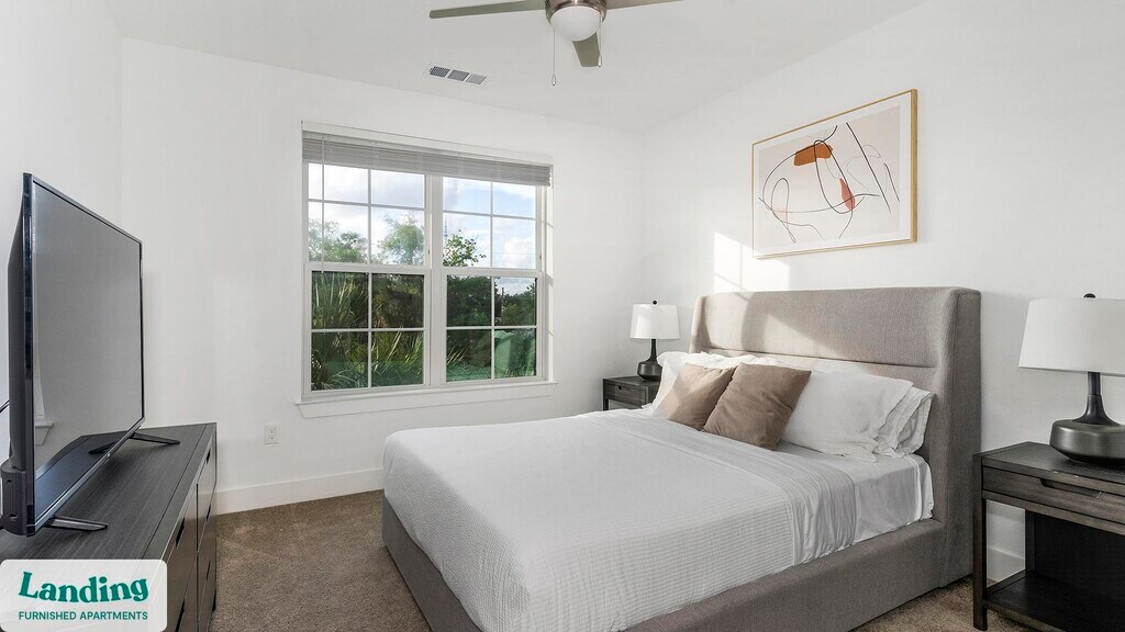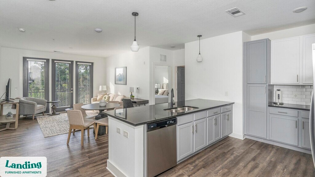 Landing offers flexible lease terms from weeks to months. Please always visit our website or contact us for the latest pricing & availability. Stay longer, save more: 6-Month Minimum base rent: starts at $2675/mo 12-Month Minimum base rent: starts at $2339/mo Landing offers flexible leases across a network of over 35,000 fully-furnished apartments throughout 375+ cities so you can rent on your terms, practically anywhere, and avoid the hassle of paying deposits or application fees. Visit to learn about all the benefits of a Landing membership, see our competitive up-to-date pricing, explore available apartments, take virtual tours, and make reservations online without jumping through traditional rental hoops. Landing's apartments at Barlow are designed for comfortable, easy living, with the ability to stay as long as you like. Experience living with Landing Every apartment is outfitted with all the modern essentials including: custom-designed furnishings, a fully-equipped kitchen with deluxe stainless steel appliances, a gourmet coffee maker, premium linens, Smart TVs, and incredibly fast, reliable internet for working from home. When you live with Landing, you'll enjoy a hassle-free experience with the added benefit of 24/7 access to our dedicated member experience team. Some of the nitty-gritty: a background check and proof of income are required; we're completely smoke-free; bundled utility packages and pricing vary based on length of stay; pet-friendly options available; listed price reflects a 12-month minimum stay.