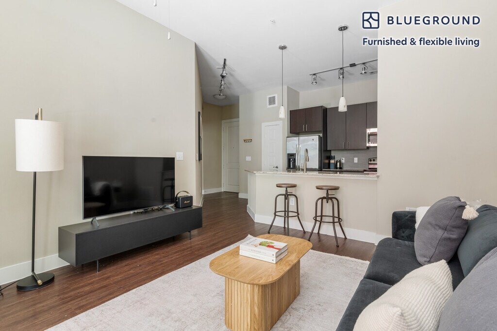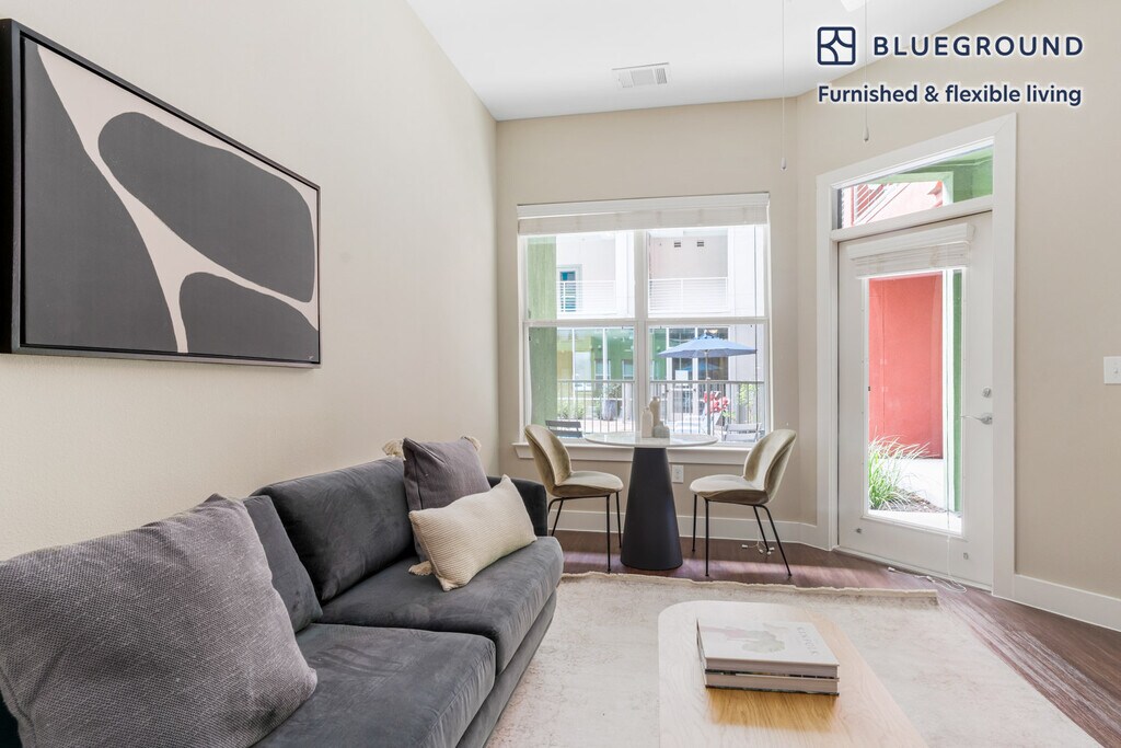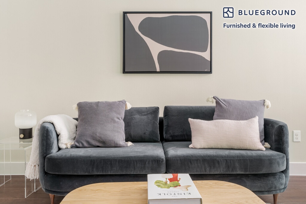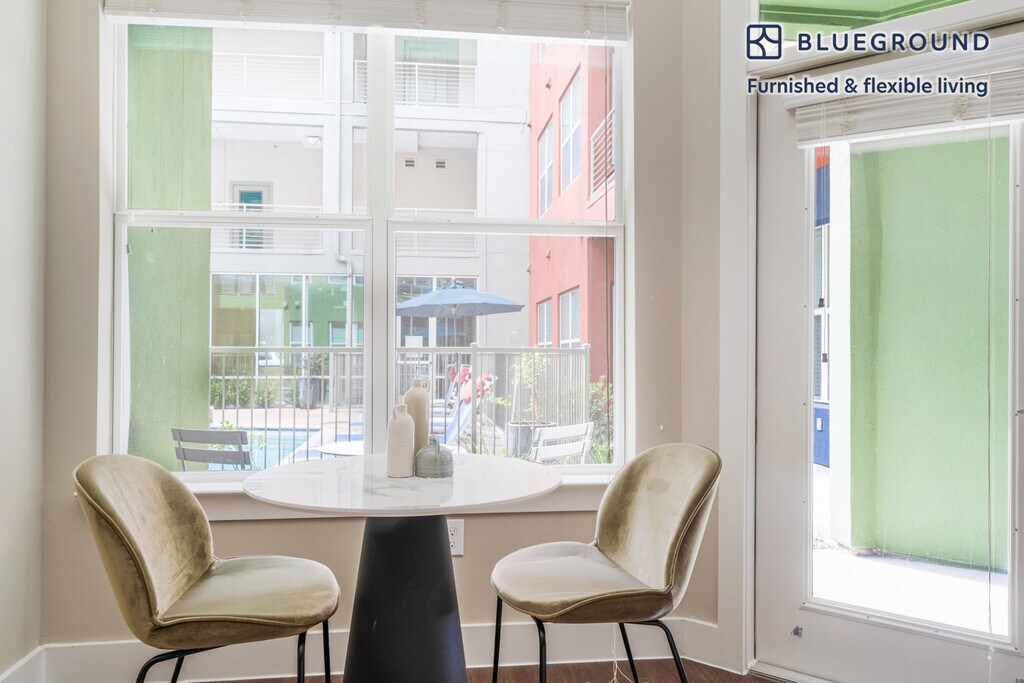 Discover the best of Austin, with this one bedroom apartment in Mueller Town Center District with balcony views over the city. It’ll be easy to simply show up and start living in this fashionably furnished apartment with its fully equipped kitchen, cozy living room, and our dedicated, on-the-ground support. (ID #ATX33) The advertised rate of $2,080/month is the lowest available price, based on a 11 month(s) and 29 day(s) stay with a move-in date of January 6, 2026. Rates vary depending on the duration of stay, season, and other parameters. For exact pricing and additional pricing components, please visit our website and enter your desired move-in and move-out dates. The rate is applicable when billed upfront; it can be higher if billed in multiple payments. Brokers are welcome to reach out. Were you looking for an unfurnished lease? Try Blueground instead and upgrade from unfurnished to furnished living: - Furnished at rates comparable to unfurnished - No setup or furniture costs - save thousands - Move-in ready - save time, just bring your suitcase Designed with you in mind Thoughtfully designed with bespoke finishes, modern furnishings, and a fully equipped kitchen, you’ll enjoy that “I’m home” feeling with this Blueground apartment. Whether you’re lounging in your cozy living room streaming the latest and greatest entertainment on the smart TV or premium wireless speaker, or getting some well-earned rest on the superior quality mattress with luxury linens, you’ll fall in love with everything this Mueller Town Center District apartment has to offer. This apartment also offers in-apartment laundry. Sleeping arrangements King Bed, 70.8in/180cm Amenities Building amenities unique to this one bedroom apartment include an on-site: - Dryer - Elevator - Swimming pool - Washing machine - Lounge - Parking - Pets allowed Arrival and ongoing support The entire apartment is yours to enjoy! Throughout your stay, you’ll have access to our Client Experience team through the Blueground App. You can schedule additional cleanings, submit maintenance requests, and view our neighborhood recommendations with just a few taps. We’ll share all details upon confirmation of your stay. Other things to note Building amenities may have an extra cost. This Blueground apartment has flexible lease options, allowing you to book it for one month, a year, or more. Pets are welcome, though weight limits and breed restrictions apply and may incur fees. Parking is offered based on availability and is subject to a fee. We take great pride in ensuring every photo displayed is shot in our own units with our actual furnishings. That said, we regularly refresh our decor and furniture arrangement, which may differ from what’s pictured. Also note - This apartment is accessible for people with physical disabilities [SI]