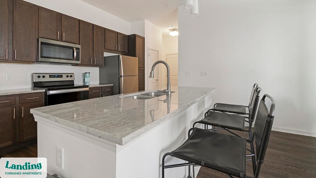 Landing offers flexible lease terms from weeks to months. Please always visit our website or contact us for the latest pricing & availability. Stay longer, save more: 6-Month Minimum base rent: starts at $2245/mo 12-Month Minimum base rent: starts at $1836/mo Landing offers flexible leases across a network of over 35,000 fully-furnished apartments throughout 375+ cities so you can rent on your terms, practically anywhere, and avoid the hassle of paying deposits or application fees. Visit to learn about all the benefits of a Landing membership, see our competitive up-to-date pricing, explore available apartments, take virtual tours, and make reservations online without jumping through traditional rental hoops. Landing's apartments at San Marco Promenade are designed for comfortable, easy living, with the ability to stay as long as you like. Experience living with Landing Every apartment is outfitted with all the modern essentials including: custom-designed furnishings, a fully-equipped kitchen with deluxe stainless steel appliances, a gourmet coffee maker, premium linens, Smart TVs, and incredibly fast, reliable internet for working from home. When you live with Landing, you'll enjoy a hassle-free experience with the added benefit of 24/7 access to our dedicated member experience team. Some of the nitty-gritty: a background check and proof of income are required; we're completely smoke-free; bundled utility packages and pricing vary based on length of stay; pet-friendly options available; listed price reflects a 12-month minimum stay.